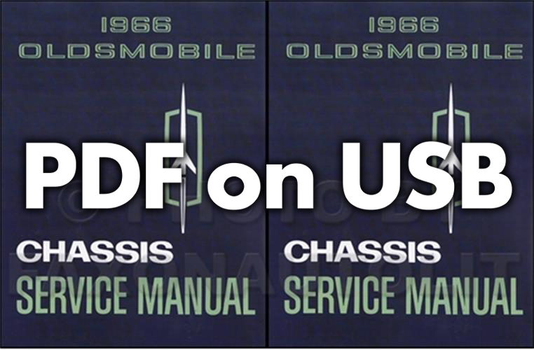 This USB offers page-for-page reproductions of two bound manuals that Olds mechanics used to service cars. It includes the 1686 page "1966 Oldsmobile Chassis Service Manual" and the 507 page "Body by Fisher 1966 Service Manual."