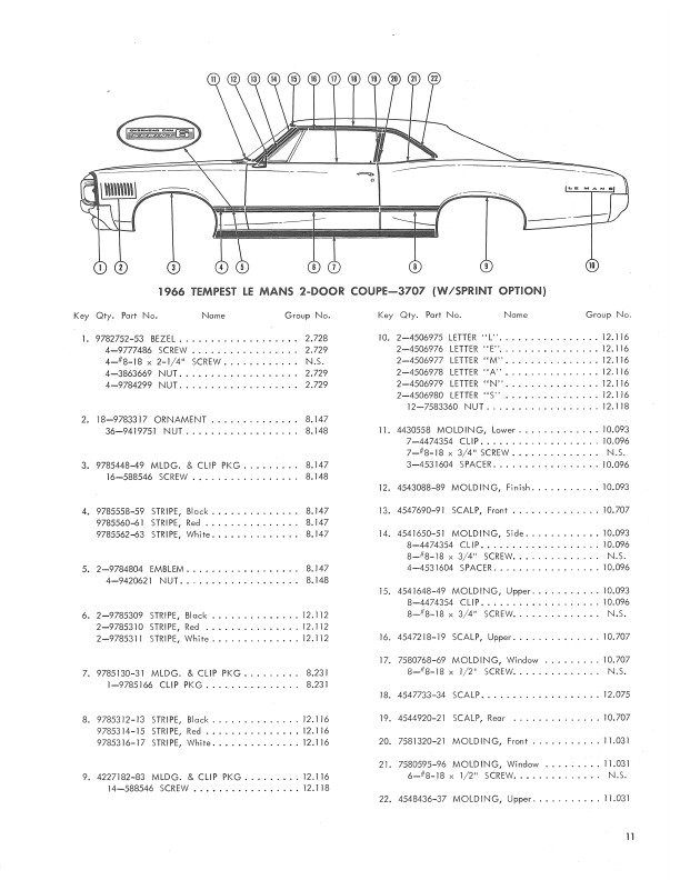 If you are restoring a Pontiac, this is the book that will help you put the finishing touches on your car. This manual holds the key to that cherry look - right down to the last detail. You will find pictures plus original Pontiac part numbers and descriptions for exterior chrome trim like ornaments, emblems, and letters. You'll also see part numbers and descriptions (but not pictures) for the clips, nuts & screws that you will need to attach them. Buy now because its not a Pontiac until it says it's a Pontiac..