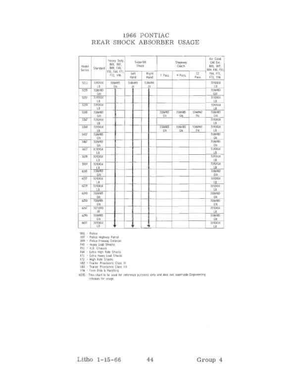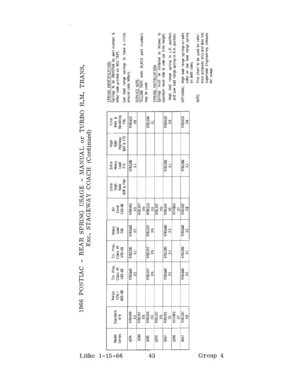 - Engine: engine assembly number and codes used with types of transmissions, carburetors, compression ratios for each model and option group