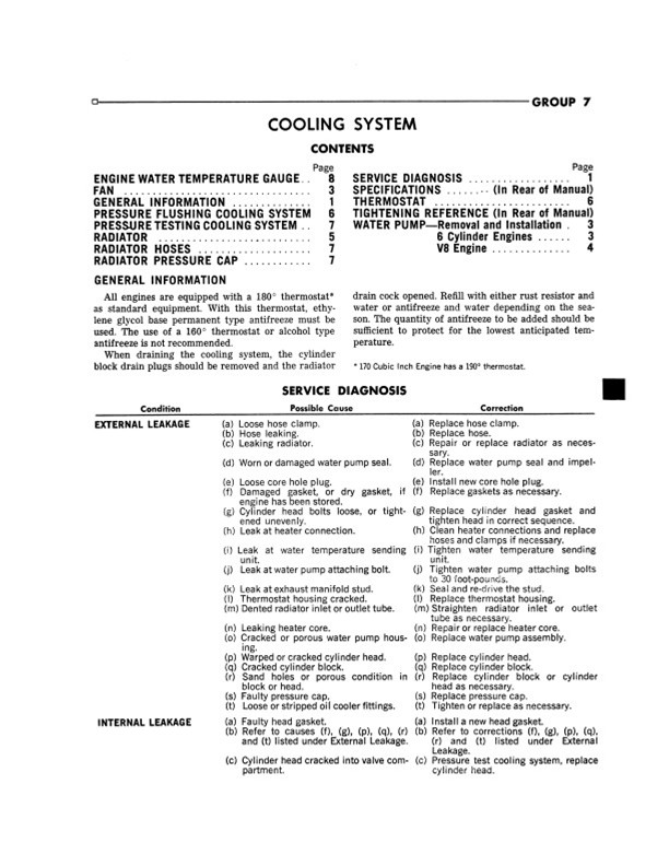 You will find detailed service procedures for lubrication, front axle, rear axle, brakes, clutch, cooling system, electrical system, engine, fuel exhaust system, frame, springs, shock absorbers, steering, transmission, universal joints, wheels, tires, and body.
