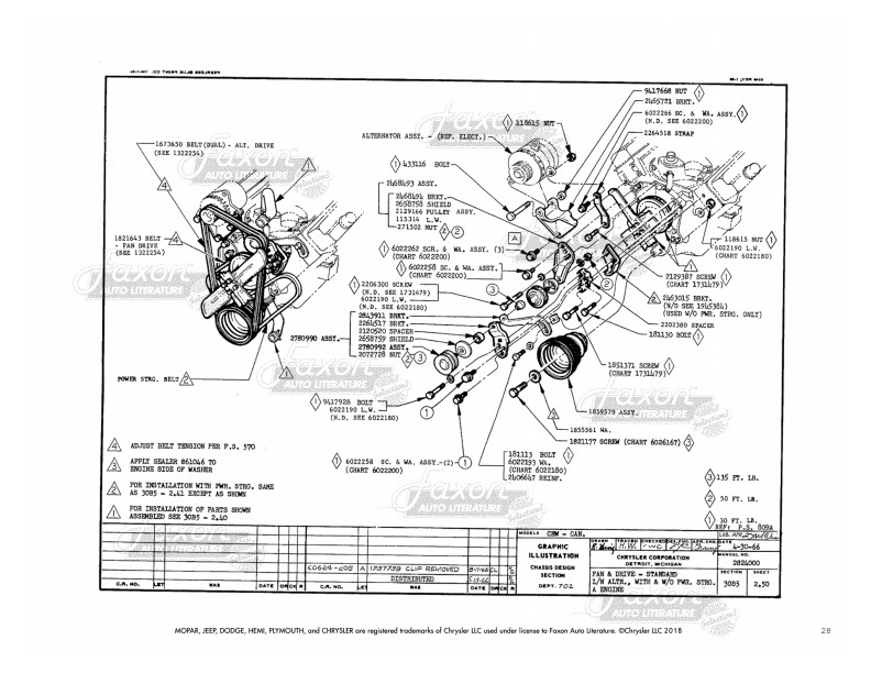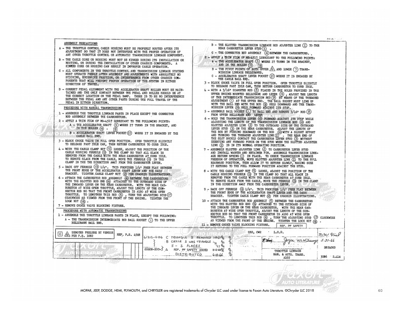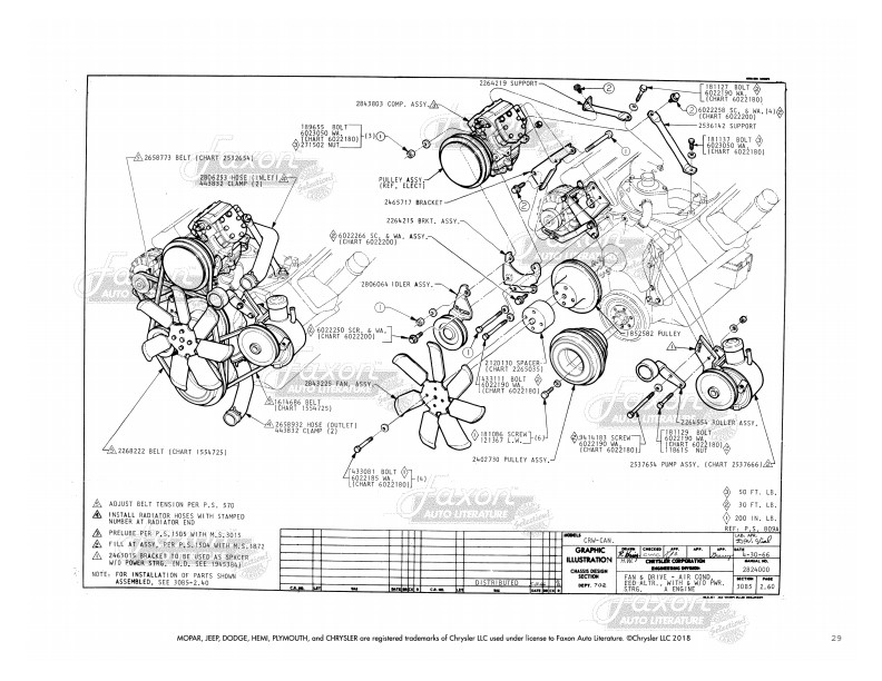 This manual gives you assembly illustrations for attaching parts to your engine, including hoses, belts, lines, linkages, and mounts. It does NOT show internal engine parts (pistons, for example). You will find illustrations for assembly of carburetor (shows carburetor installation, but not internal carburetor parts), fuel lines, vacuum lines, throttle linkage (including adjustment instructions), fan and drive, engine mounts/supports, and starter. The book shows exploded views of these parts and includes original part numbers.