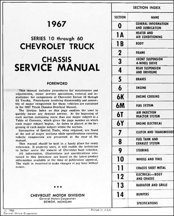 - 596 page "1967 Chevrolet Truck Chassis Service Manual Series 10-60" and the