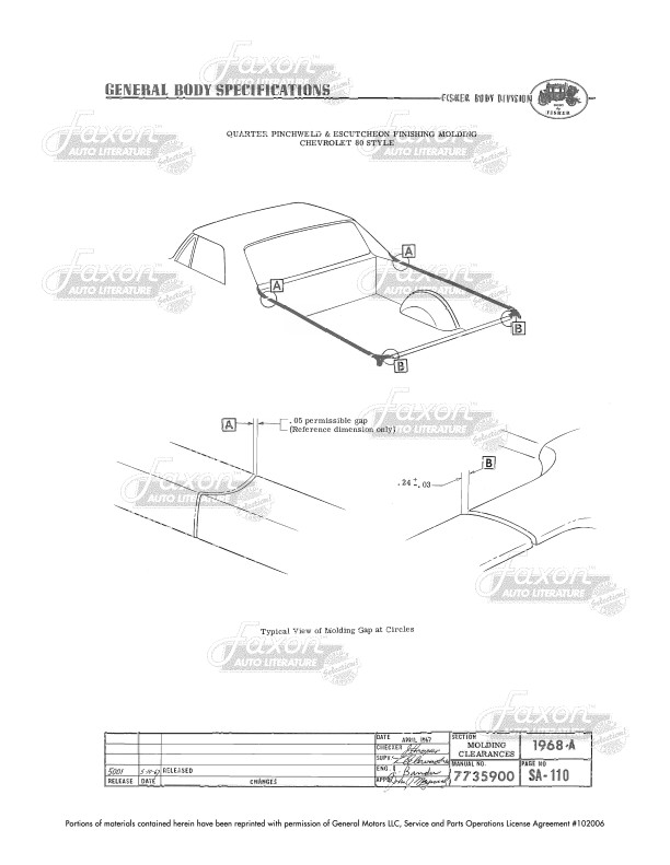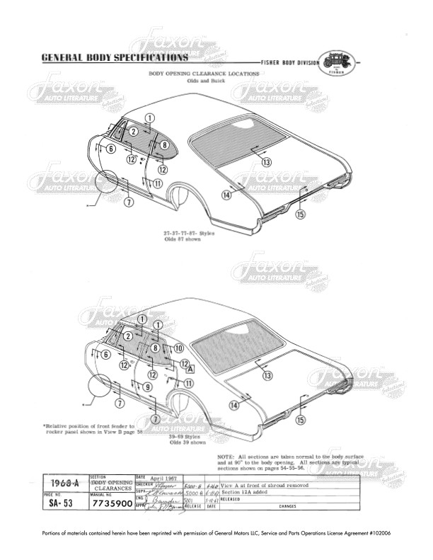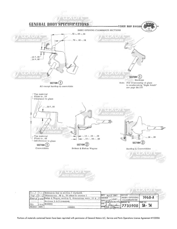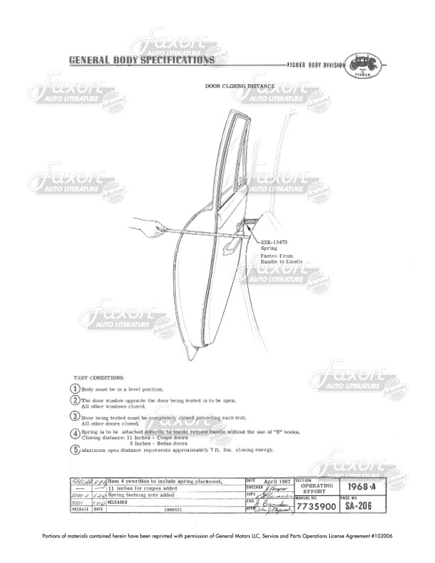 This assembly manual was written by GM engineers for use in the Fisher Body assembly plant. It gives you specifications for clearances, operating effort, leak testing, and torque.