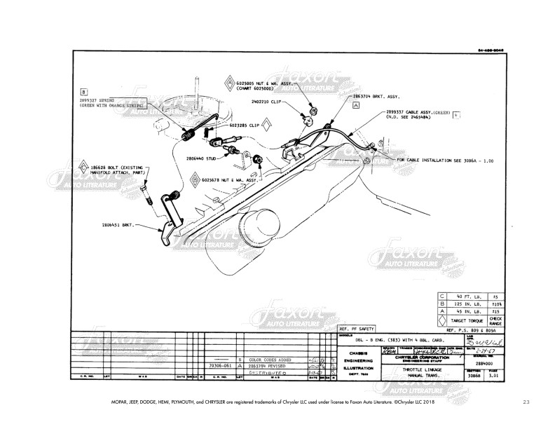 This manual gives you assembly illustrations for attaching parts to your engine, including hoses, belts, lines, linkages, and mounts. It does NOT show internal engine parts (pistons, for example). You will find illustrations for assembly of carburetor (shows carburetor installation, but not internal carburetor parts), fuel lines, vacuum lines, throttle linkage (including adjustment instructions), fan and drive, engine mounts/supports, and starter. The book shows exploded views of these parts and includes original part numbers.