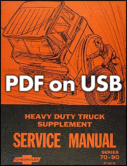This USB covers all 1969-1972 Chevrolet Heavy Duty Truck 70, 80 & 90 series models including conventionals, tilt cabs, single axle, and tandem axle vehicles, with both gas and diesel engines.