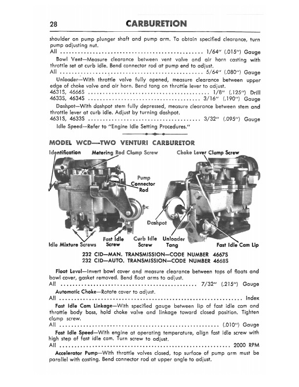 This handy little book is a reprint of a mechanic's accessory. You will find specifications for tune-up, engines, cooling systems, batteries, charging, ignition, carburetion, clutch, transmission, axles, brakes, wheel alignment, steering, suspension, bulb chart, as well as interior and exterior dimensions. Includes lubrication instructions and capacities. Buy now to own this AMC manual.