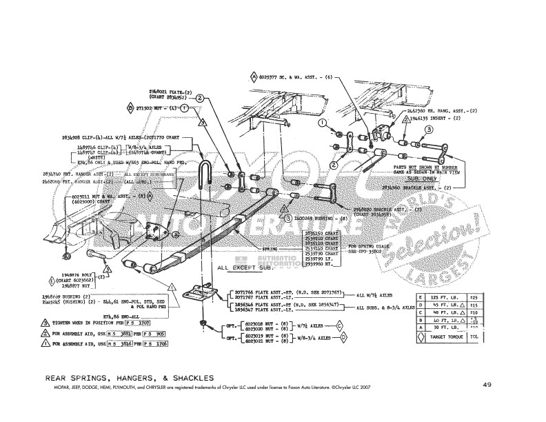 This book is a reproduction of a manual originally used by workers on the factory assembly lines putting cars together. You'll see page after page of detailed illustrations of how each part fits others. Use the part numbers and illustrations to help you verify original parts, to reassemble parts you are restoring, or to replace missing parts. You’ll find detailed parts illustrations and torque specs you haven’t seen anywhere else. This chassis manual includes transmission and clutch housing, clutch pedal and linkage, steering gear and linkage, shifter and linkage, steering column, suspension, brakes, brake pedals and linkage, brake lines, exhaust system, cruise control, and bumpers. This manual covers all 1969 Plymouth GTX, Road Runner, Satellite, Sport Satellite, Belvedere, Police, Taxi, and Wagons. This 8.5 x 11 inch book has 87 pages and is in new condition. Like all assembly manuals, this is reproduced from a book made for use inside the factory, and never intended for the public. Therefore, the print (like the print in original assembly manuals) is occasionally light. We have made every effort to restore the book where possible. It includes a table of contents, index, and page title for each picture. Buy now to own this never before available book.