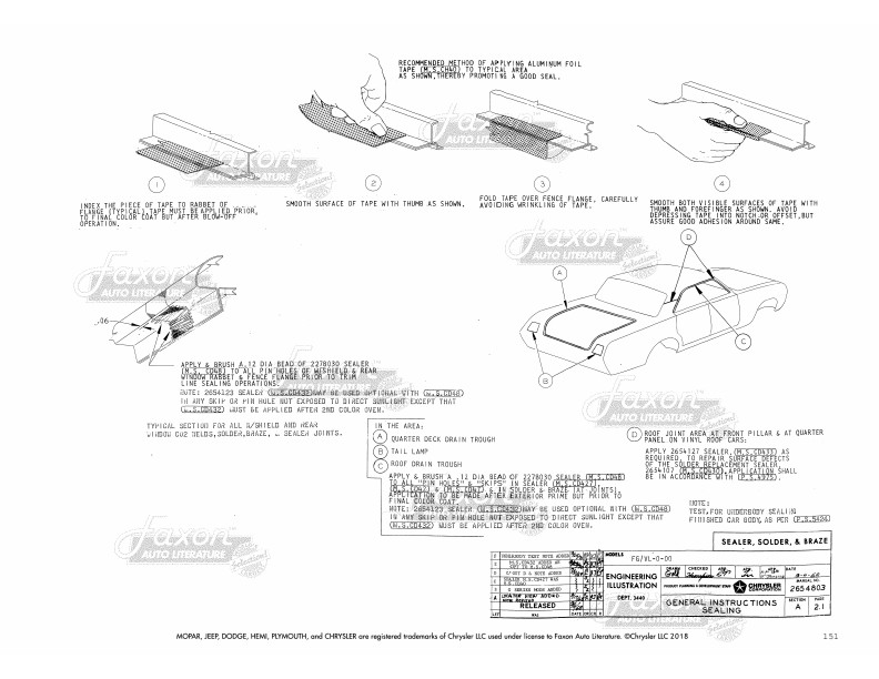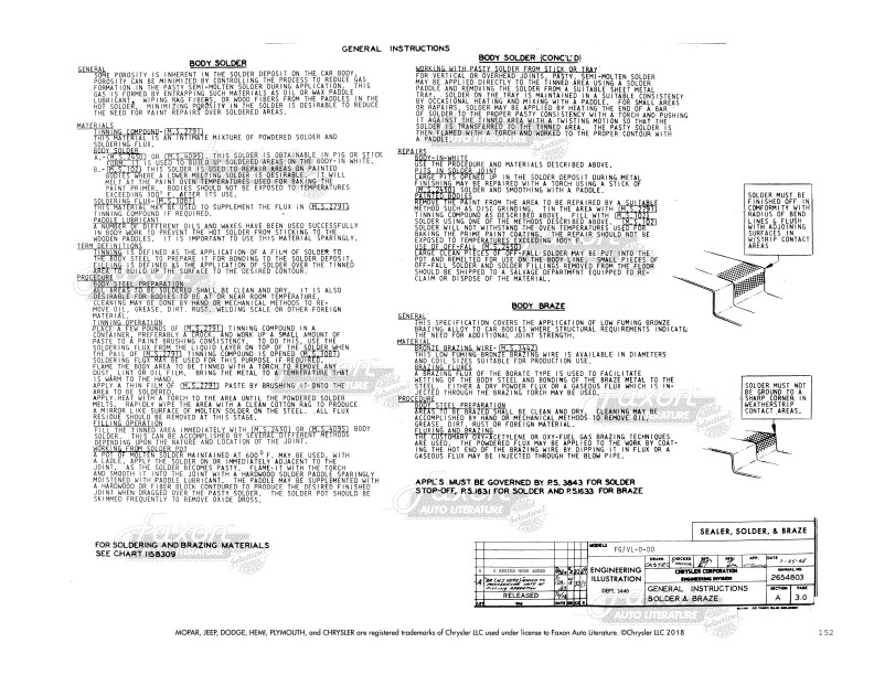 - Sealer, Solder, & Braze: Apply solder, tapes, and liquid sealants to fenders, dash, cowl, pillars, underbody, roof rails, quarter panels, glass channels, convertible top well, doors, and trunk.