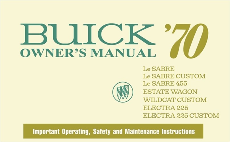 Buick 1970 Owner's Manual: Le Sabre - Le Sabre Custom - Le Sabre 455 - Estate Wagon - Wildcat Custom - Electra 225 - Electra 225 Custom