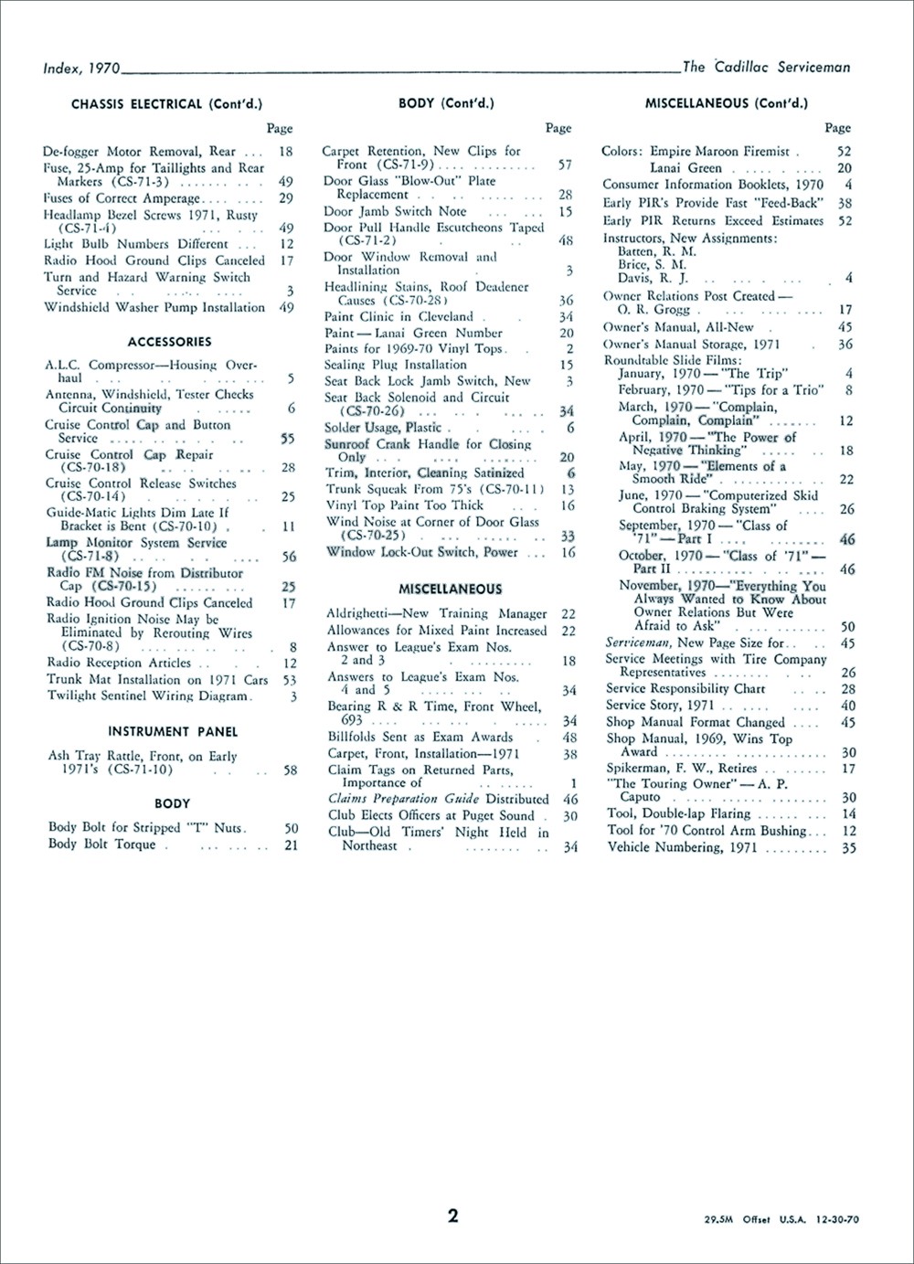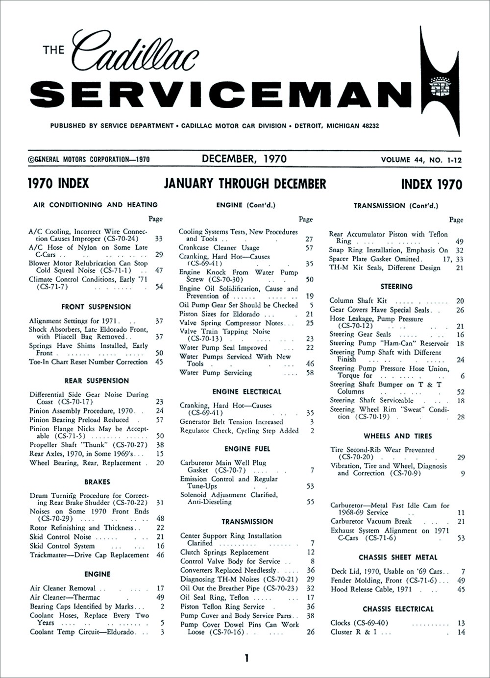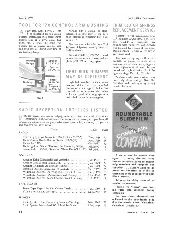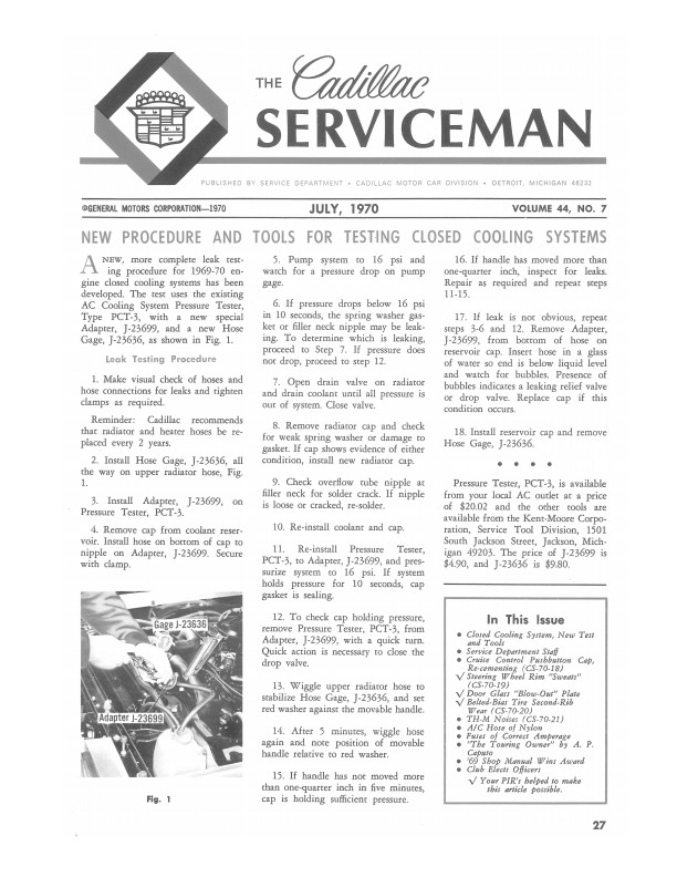"1970 The Cadillac Serviceman Service Bulletins'