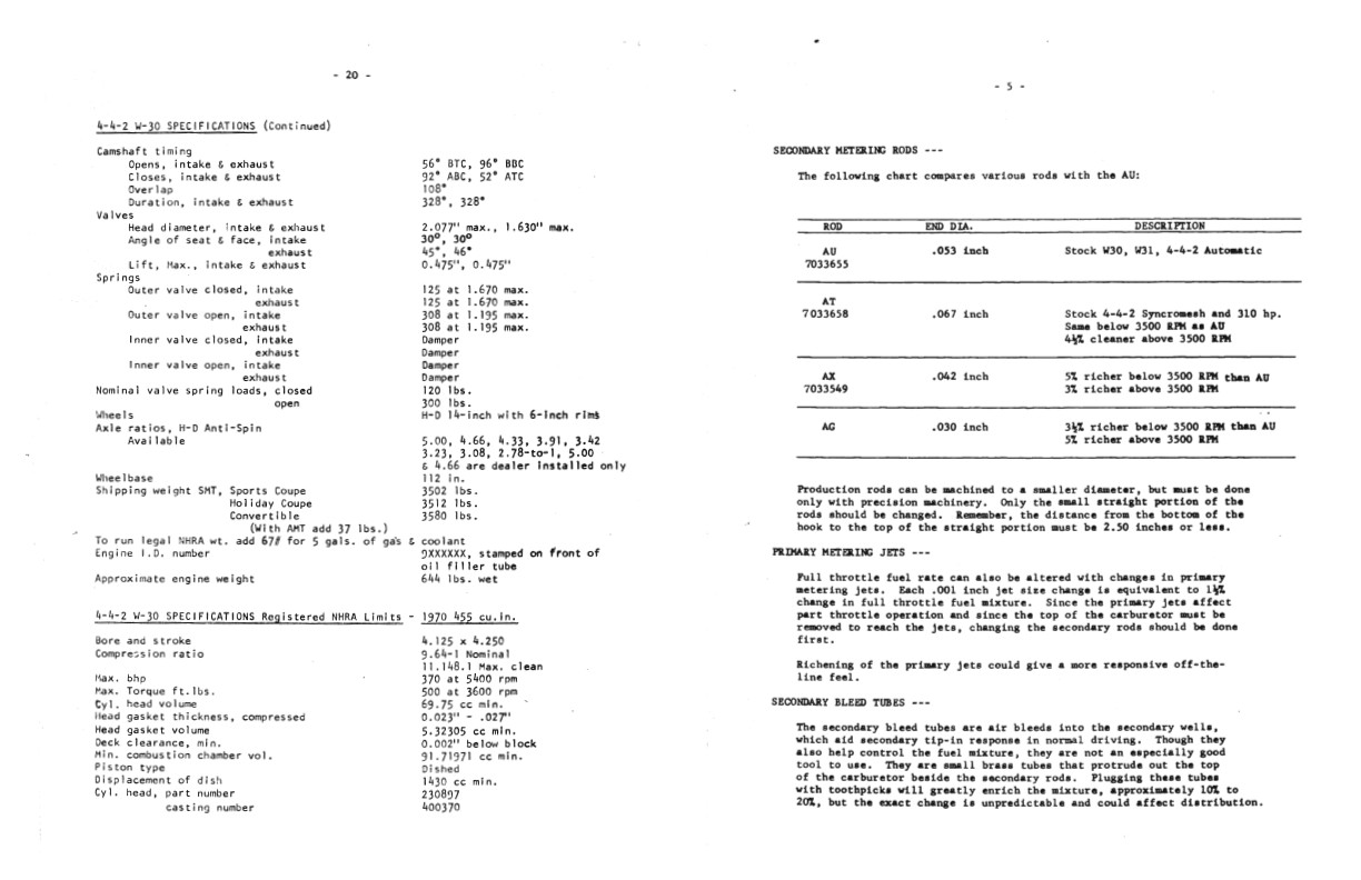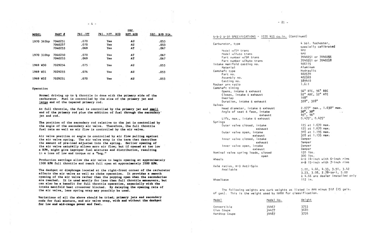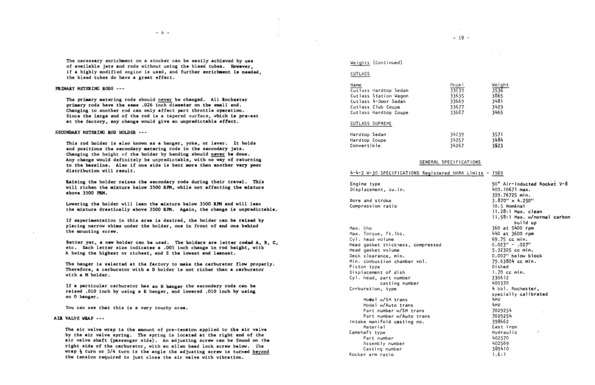 This manual will help you get the most out of your car; it is a reproduction of a book printed by Olds in Spring of 1970 to help their customers get maximum muscle out of the ultimate Oldsmobiles. You will find specifications and step-by-step instructions for super tuning ignition, carburetion, and valve train. You'll see precise specs for tolerances and clearances for blueprinting the engine, powertrain, and suspension; the factory experts recommend Olds & aftermarket parts that will enhance performance. Includes two page on the Mondello "Cool Set Up" oiling system.  New condition. Buy now to tweak your Oldsmobile into high gear.