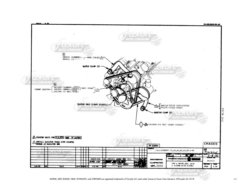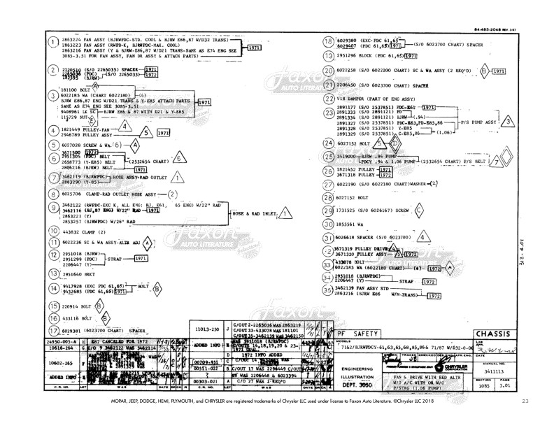 This manual gives you assembly illustrations for attaching parts to your engine, including hoses, belts, lines, linkages, and mounts. It does NOT show internal engine parts (pistons, for example). You will find illustrations for assembly of carburetor (shows carburetor installation, but not internal carburetor parts), fuel lines, vacuum lines, throttle linkage (including adjustment instructions), air pump, fan and drive, engine mounts/supports, and starter. The book shows exploded views of these parts and includes original part numbers.