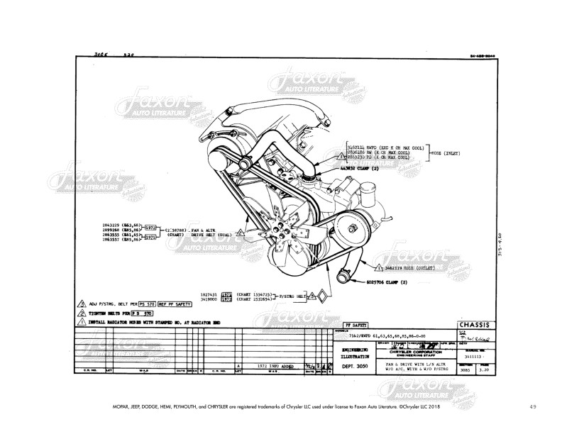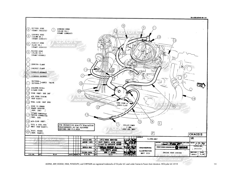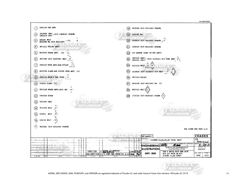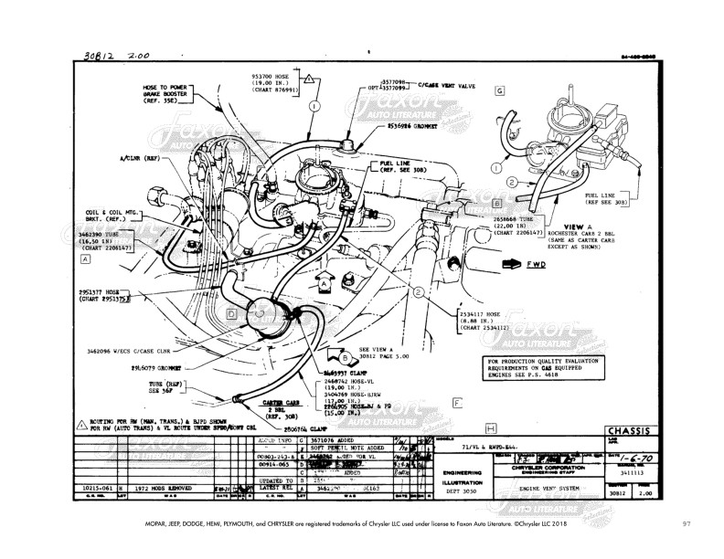 This manual gives you assembly illustrations for attaching parts to your engine, including hoses, belts, lines, linkages, and mounts. It does NOT show internal engine parts (pistons, for example). You will find illustrations for assembly of carburetor (shows carburetor installation, but not internal carburetor parts), fuel lines, vacuum lines, throttle linkage (including adjustment instructions), air pump, fan and drive, engine mounts/supports, and starter. The book shows exploded views of these parts and includes original part numbers.