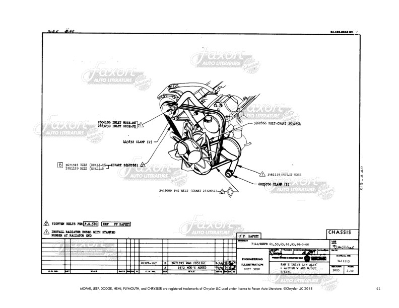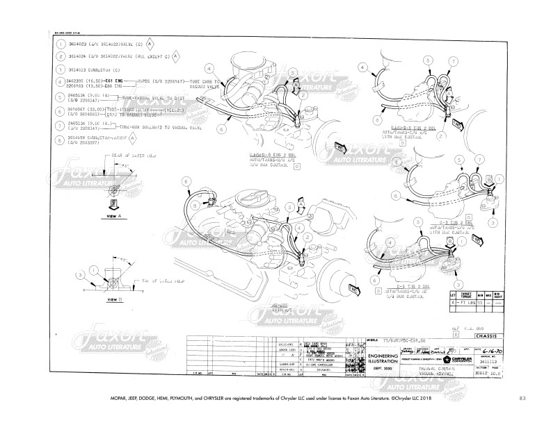 This manual gives you assembly illustrations for attaching parts to your engine, including hoses, belts, lines, linkages, and mounts. It does NOT show internal engine parts (pistons, for example). You will find illustrations for assembly of carburetor (shows carburetor installation, but not internal carburetor parts), fuel lines, vacuum lines, throttle linkage (including adjustment instructions), air pump, fan and drive, engine mounts/supports, and starter. The book shows exploded views of these parts and includes original part numbers.