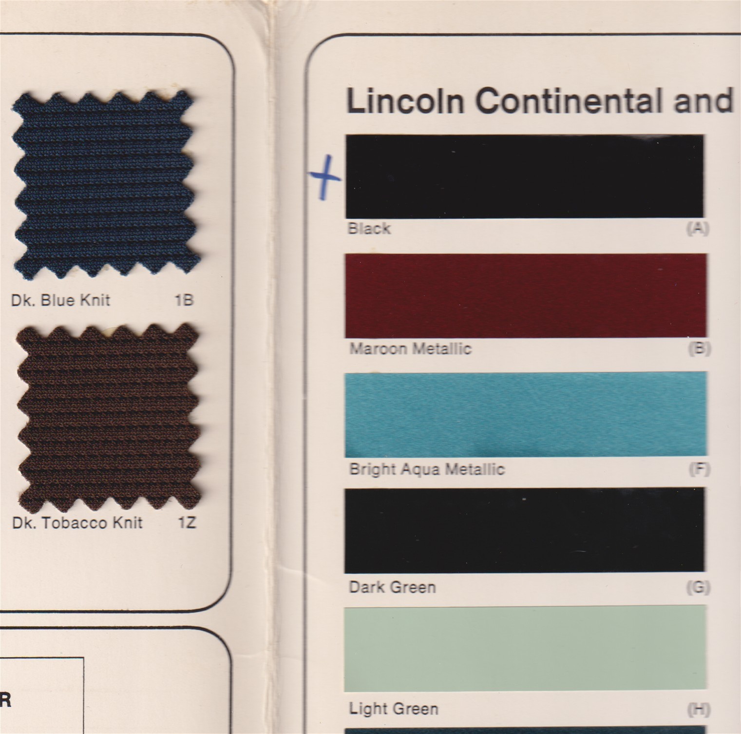 1971 Lincoln Continental - Continental Mark III Color & Upholstery Selections