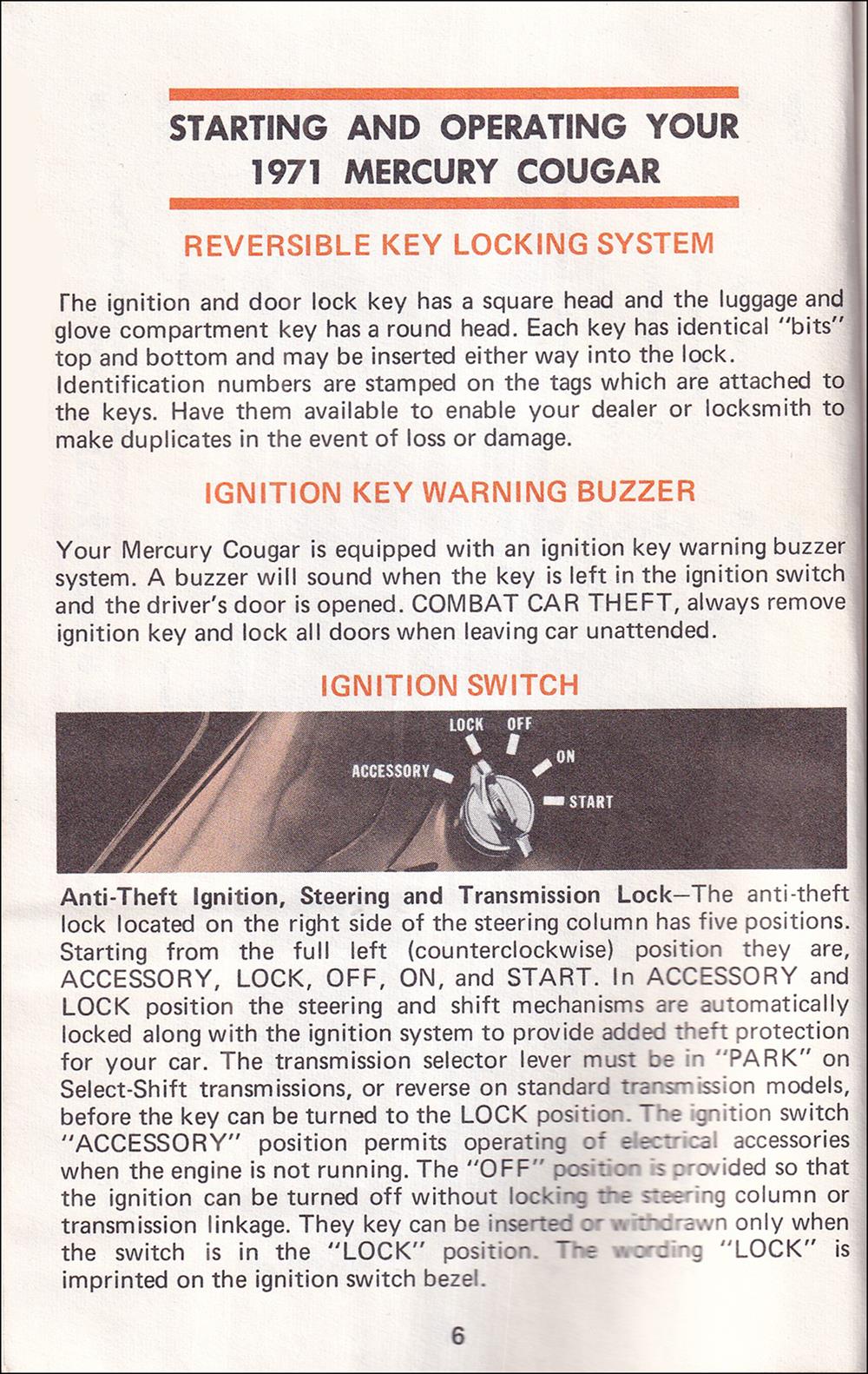 1971 Registered Owner's Manual Cougar