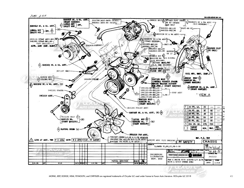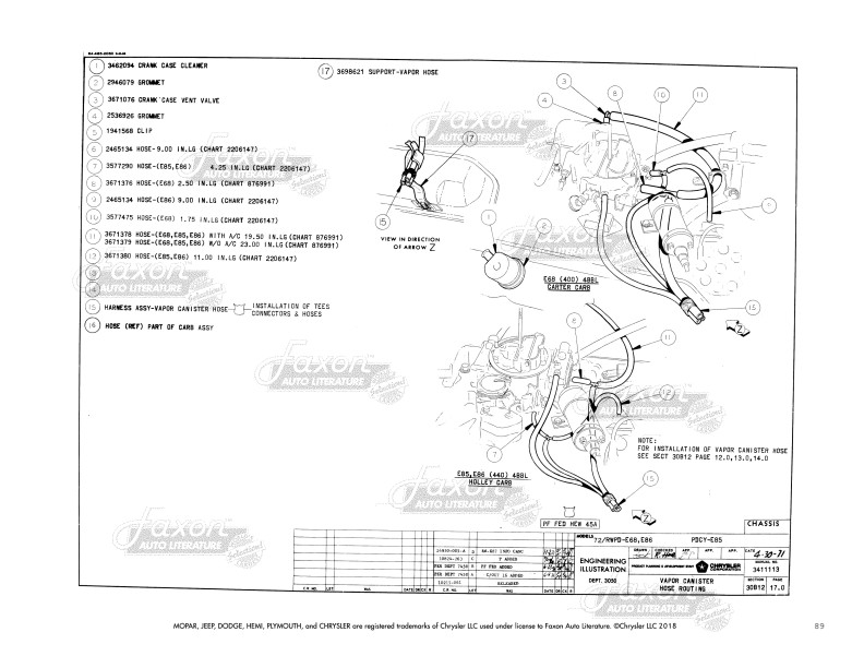 This manual gives you assembly illustrations for attaching parts to your engine, including hoses, belts, lines, linkages, and mounts. It does NOT show internal engine parts (pistons, for example). You will find illustrations for assembly of carburetor (shows carburetor installation, but not internal carburetor parts), fuel lines, vacuum lines, throttle linkage (including adjustment instructions), air pump, fan and drive, engine mounts/supports, and starter. The book shows exploded views of these parts and includes original part numbers.