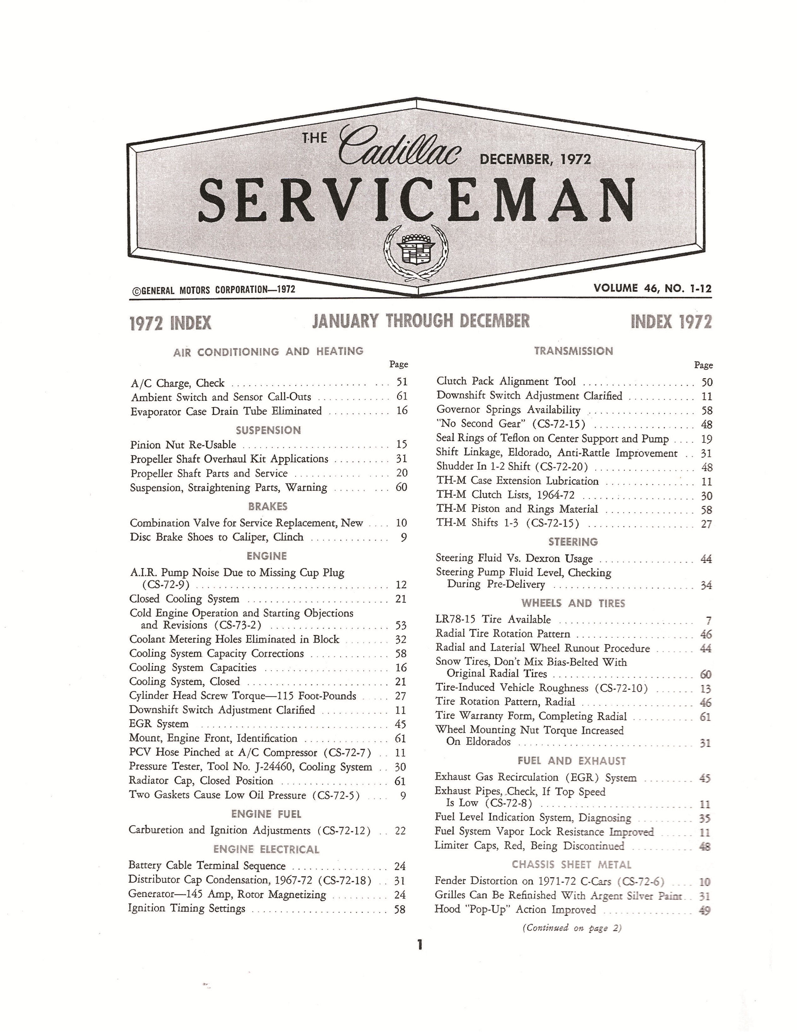 This manual is a licensed reproduction of a set of the Serviceman bulletins printed by Cadillac to help mechanics at the dealer repair cars. If you've got the factory shop manual for your Cadillac, you've only got half the story – this set has repair instructions that mechanics found that they needed after the shop manual was printed, and mid-year changes that aren't accounted for in the shop manual. There is parts and service info for accessories, body, brakes, transmission, engine, cooling system, electrical, lubrication, suspension, steering, tools, and more. Buy now to own this hard-to-find service information.