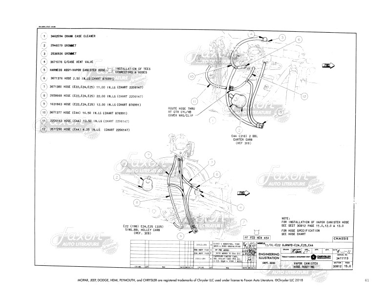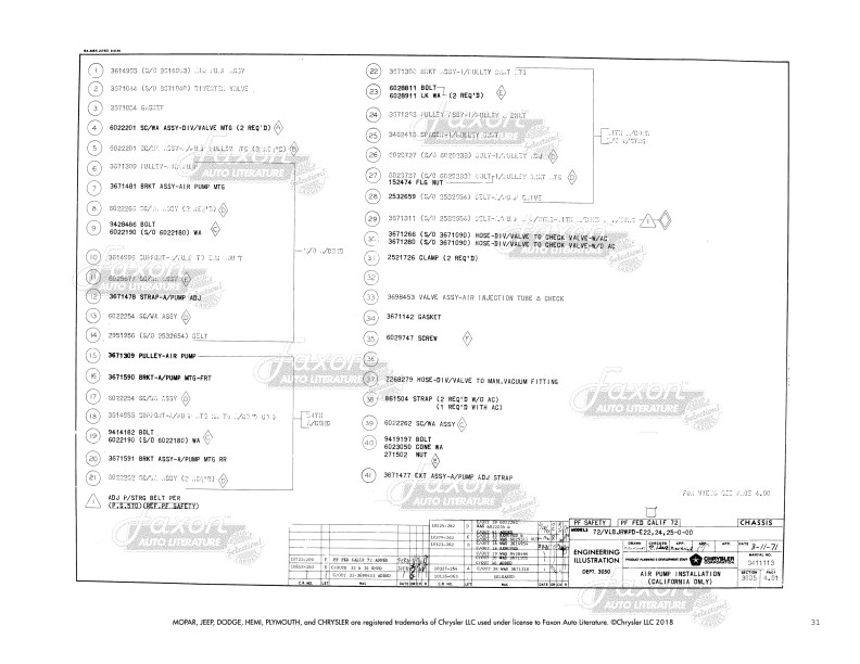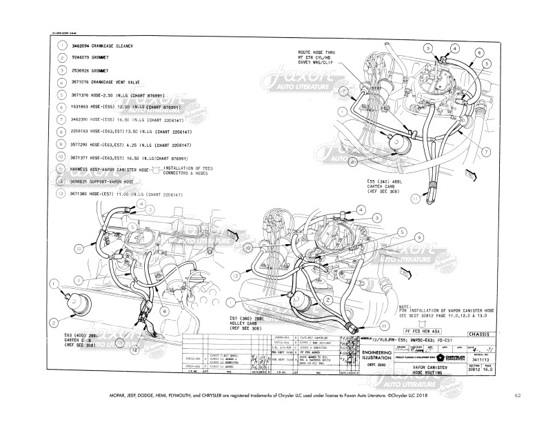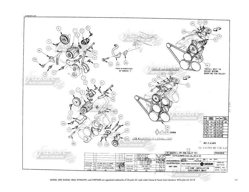 This manual gives you assembly illustrations for attaching parts to your engine, including hoses, belts, lines, linkages, and mounts. It does NOT show internal engine parts (pistons, for example). You will find illustrations for assembly of carburetor (shows carburetor installation, but not internal carburetor parts), fuel lines, vacuum lines, throttle linkage (including adjustment instructions), air pump, fan and drive, engine mounts/supports, and starter. The book shows exploded views of these parts and includes original part numbers.