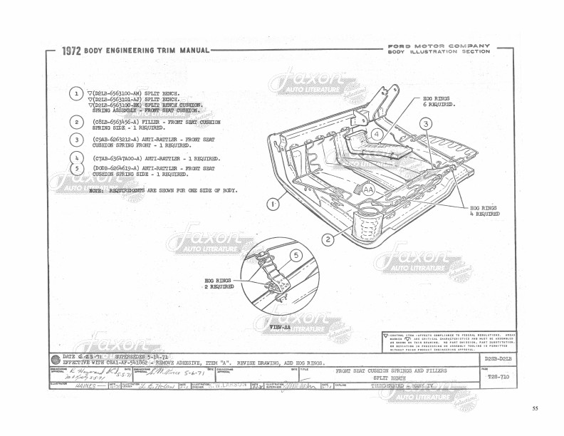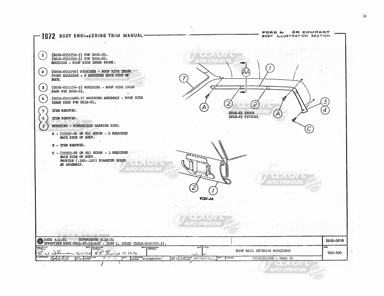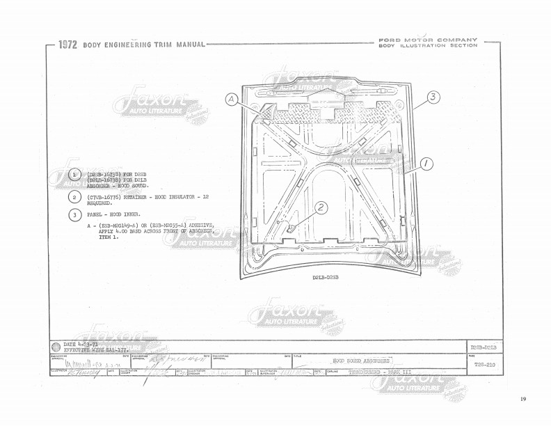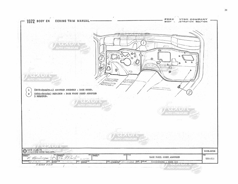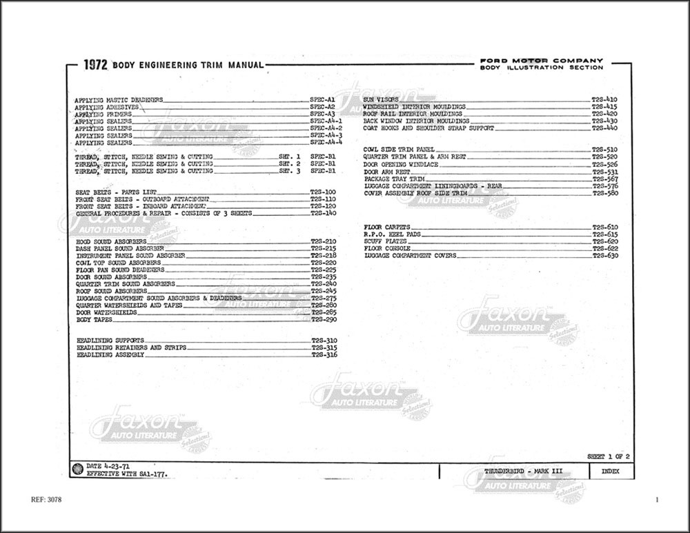 You will find out the locations of dozens of sound absorbers (insulation), water seals, and more. There are exploded views and illustrations on just about every one of the book's pages. Like all assembly manuals, this is reproduced from a book made for use inside the factory, and never intended for the public. Therefore, the print (like the print in original assembly manuals) is occasionally light. Some of the print in this book is small. Each page has a watermark in the background like the sample images shown here. New condition. Go on and tear that car apart! This book will help you put it back together.