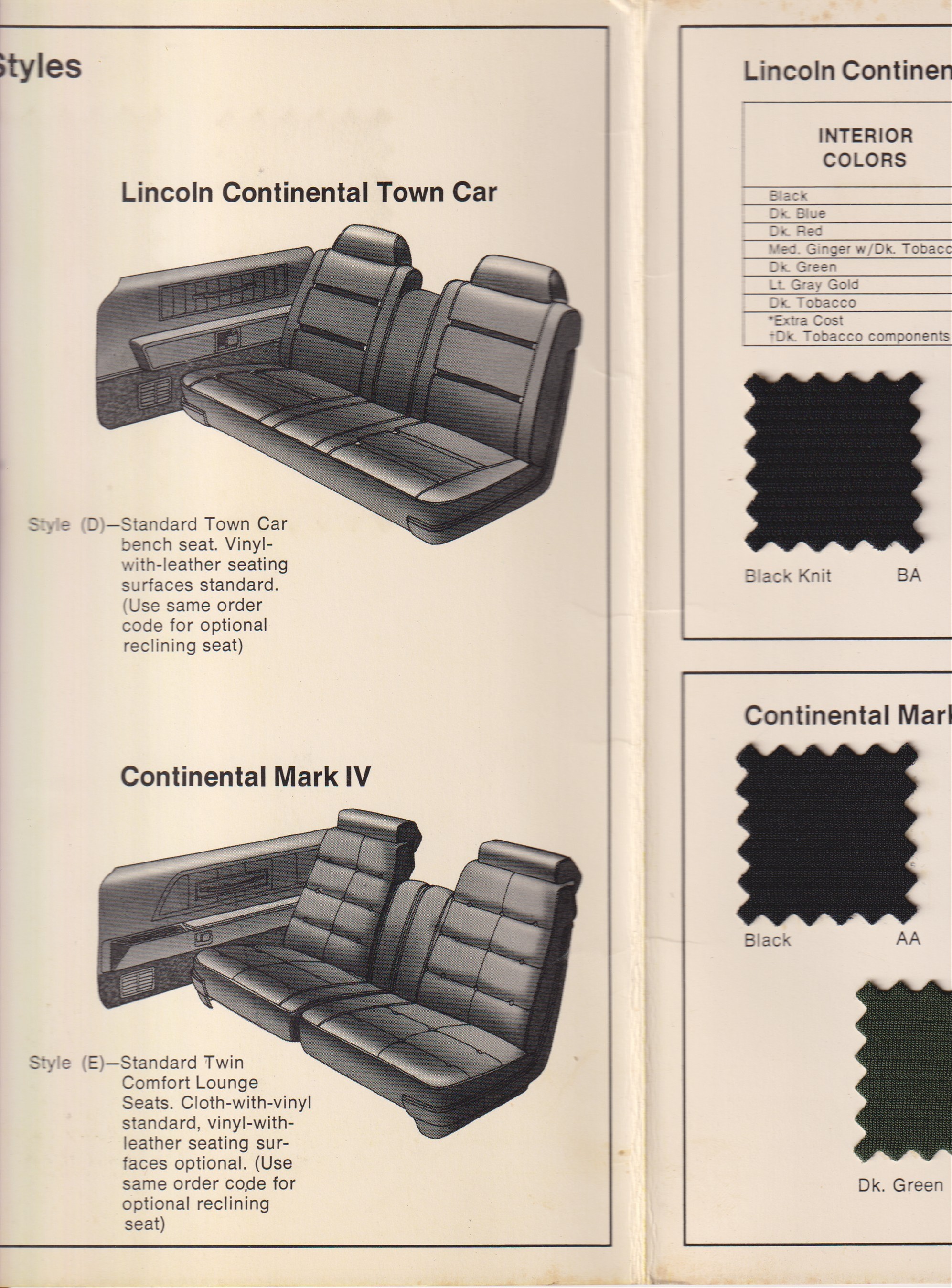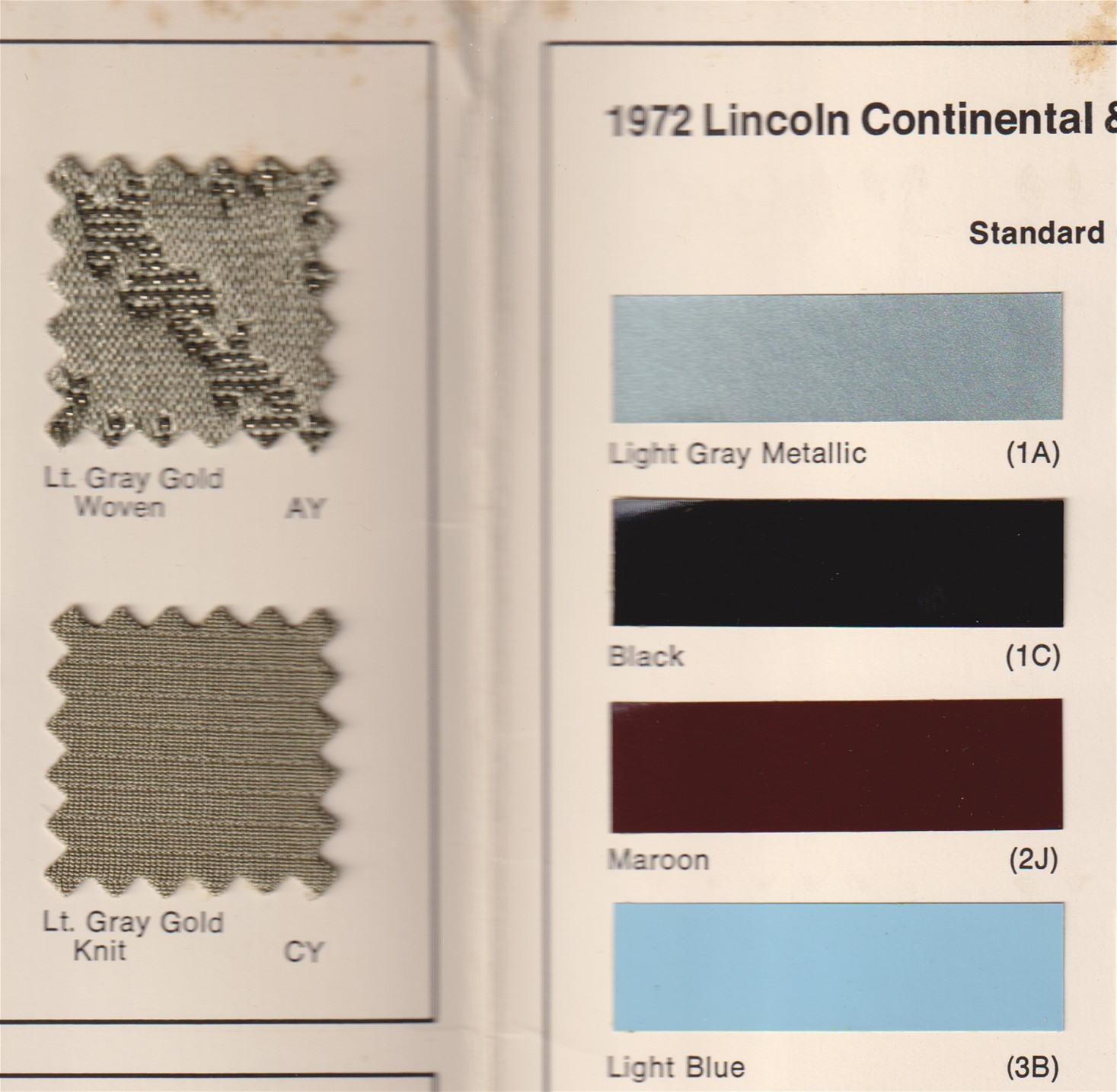 1972 Lincoln Continental & Continental Mark IV Color & Upholstery Selections