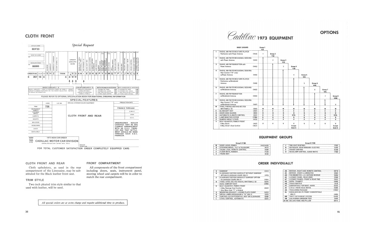 Buy now to get the best information on optional equipment for the 1973 Cadillac.
