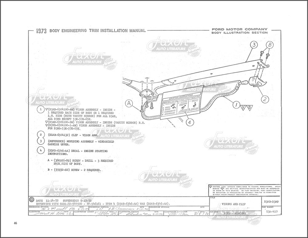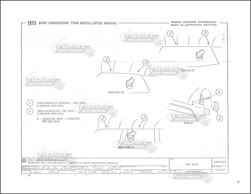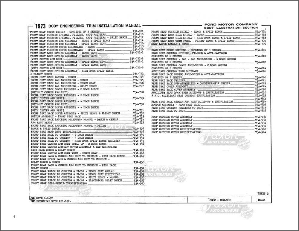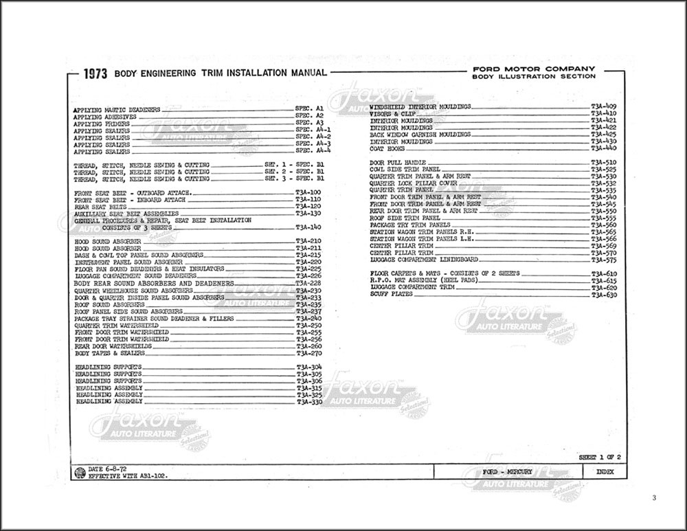 You will find out the locations of dozens of sound absorbers (insulation), water seals, and more. There are exploded views and illustrations on just about every one of the book's pages. Like all assembly manuals, this is reproduced from a book made for use inside the factory, and never intended for the public. Therefore, the print (like the print in original assembly manuals) is occasionally light. Some of the print in this book is small. Each page has a watermark in the background like the sample images shown here. New condition. Go on and tear that car apart! This book will help you put it back together.