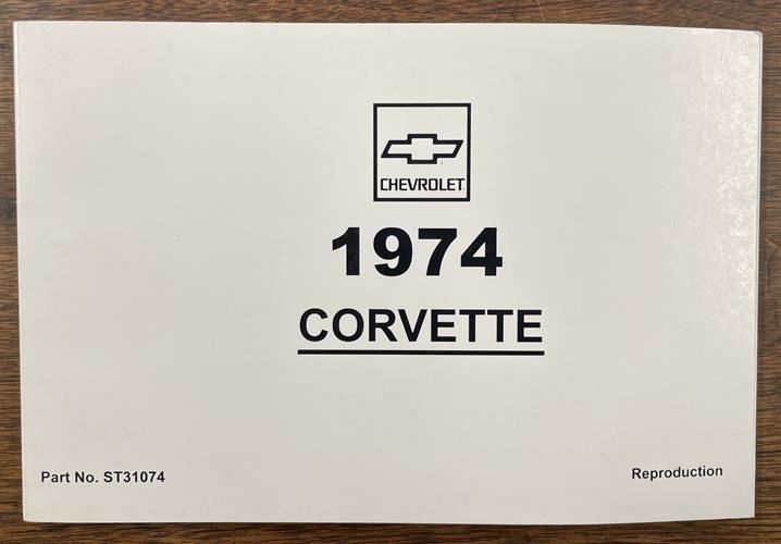 This is a reprint of the owner's manual that came with your Corvette. It was printed by GM after 1974. Find out essentials of operation and maintenance. You will find directions for the instruments and controls, as well as operation of standard & optional equipment such as the air conditioning, battery, brakes, clock, clutch, cooling system, doors, folding top, fuel system, glove box, hard top, heater, hood, ignition, jack, lighter, lighting system, locks, positraction, power brakes, power steering, radio, rear compartment, safety belts, tires, ventilation, wipers, windows, and more. You will also find lubrication specifications, engine specifications, adjustment references, and helpful troubleshooting tips. The book has 86 pages and is in NEW condition. Buy now to own the best manual for your Corvette.