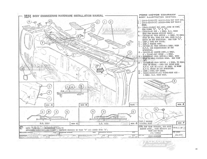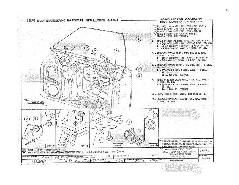 Find out how to make window adjustments. There are exploded views and illustrations on just about every one of the book's pages. Like all assembly manuals, this is reproduced from a book made for use inside the factory, and never intended for the public. Therefore, the print (like the print in original assembly manuals) is occasionally light. Some of the print in this book is small. Each page has a watermark in the background. New condition. Go on and tear that car apart! This book will help you put it back together.
