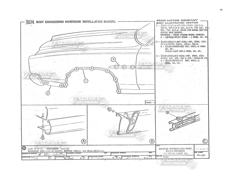 This reprinted manual shows exploded views of the body of your car and includes original part numbers. Use this manual to help you disassemble or reassemble body parts, and/or to help identify parts that may be missing or incorrect. You will find exploded views of
