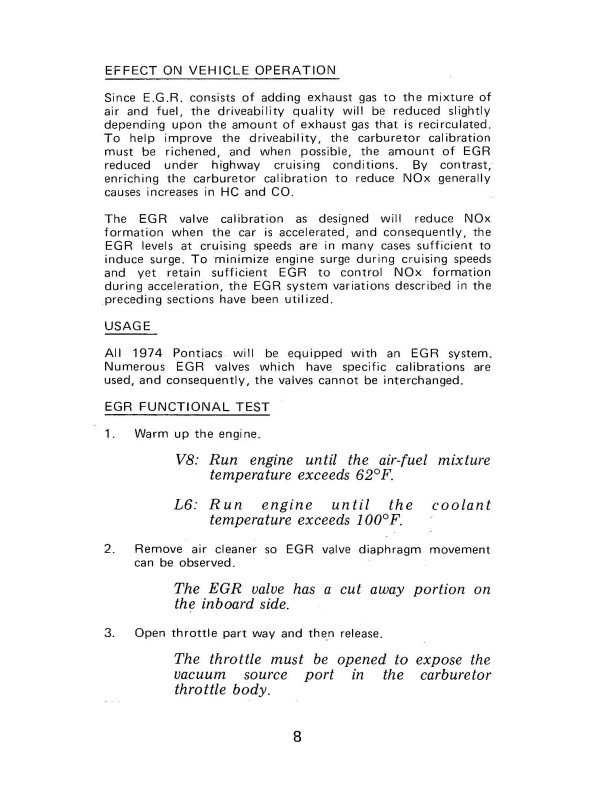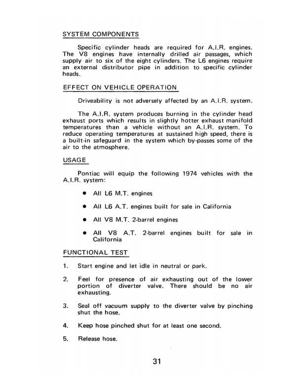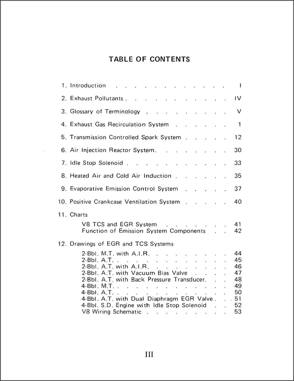 Find out how to diagnose your emissions system with this hard-to-find manual. This is a reprint of the manual that a Pontiac dealer mechanic used to work on cars. You will learn about heated air and cold air induction, the transmission controlled spark system, air injector reaction system, idle stop solenoid, EGR and TCS, positive crankcase ventilation system, and the evaporative emission control system. There are sections on system descriptions, schematics, systems diagnosis, test procedures, vacuum diagrams, and troubleshooting roadmaps to guide you. New condition. Buy now for this essential shop manual from Pontiac.