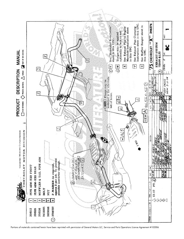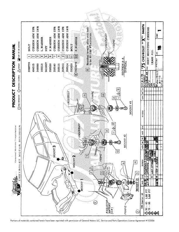 This reprinted manual gives you assembly illustrations down to the last nut, bolt and screw. It shows exploded views of the mechanical parts of the car, and includes part group numbers. Use this manual to help you disassemble or reassemble parts of your car, and or to help identify parts that may be missing or incorrect. The book contains production and regular production option information. That means that you get information on the base model all the way up to "fully loaded." You will find illustrations for body mounting, frame, front & rear suspension, brakes, fuel & exhaust, steering, wheels & tires, electrical, radiator & grille, bumpers, and much more. The book shows how the engine and transmission are mounted in the car, but does not show the inside of the engine or transmission. You will also find accessories and options such as the radio & speakers, heater, and much more. There are exploded views and illustrations on just about every page, with wiring diagrams, torque specifications, and handwritten revision records.