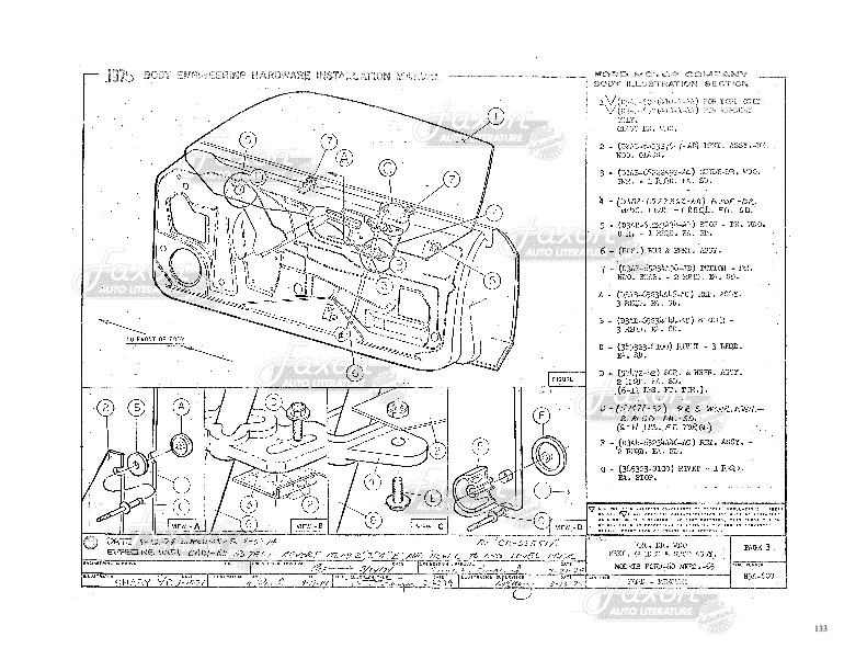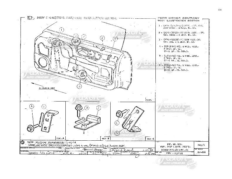 Find out how to make window adjustments. There are exploded views and illustrations on just about every one of the book's pages. Like all assembly manuals, this is reproduced from a book made for use inside the factory, and never intended for the public. Therefore, the print (like the print in original assembly manuals) is occasionally light. Some of the print in this book is small. Each page has a watermark in the background. New condition. Go on and tear that car apart! This book will help you put it back together.