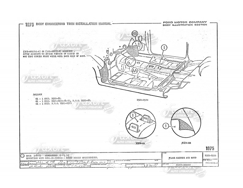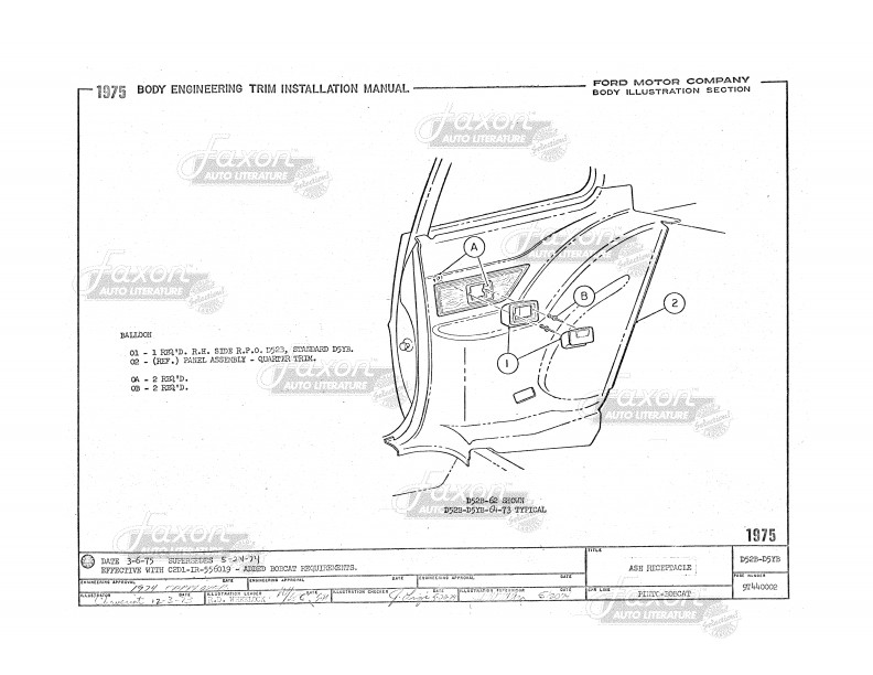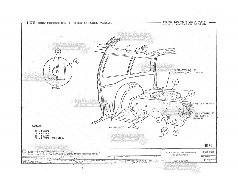 You will find out the locations of dozens of sound absorbers (insulation), water seals, and more. There are exploded views and illustrations on just about every one of the book's pages. Like all assembly manuals, this is reproduced from a book made for use inside the factory, and never intended for the public. Therefore, the print (like the print in original assembly manuals) is occasionally light. Some of the print in this book is small. Each page has a watermark in the background like the sample images shown here. New condition. Go on and tear that car apart! This book will help you put it back together.