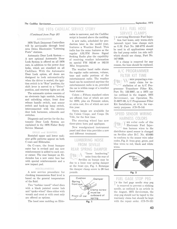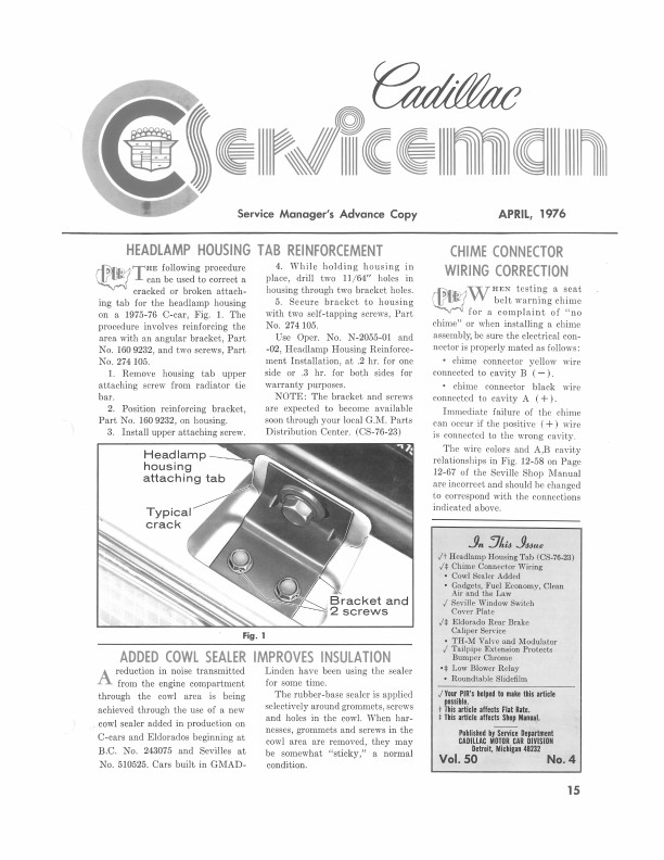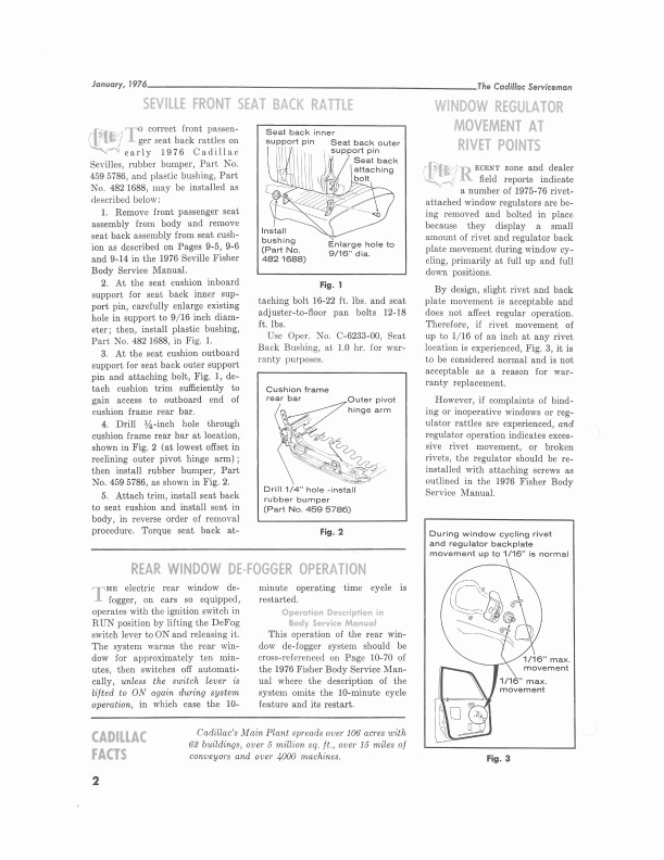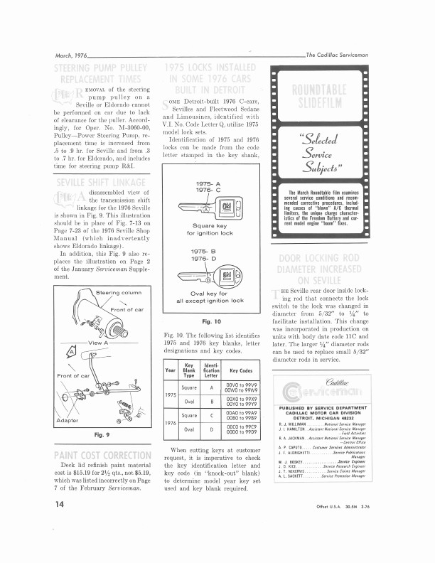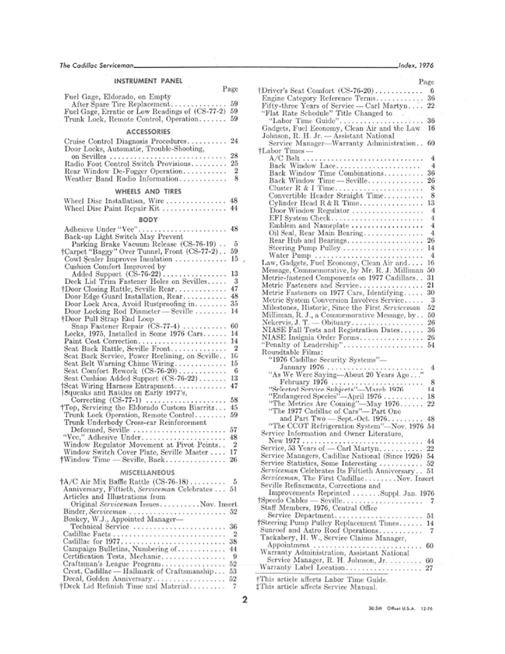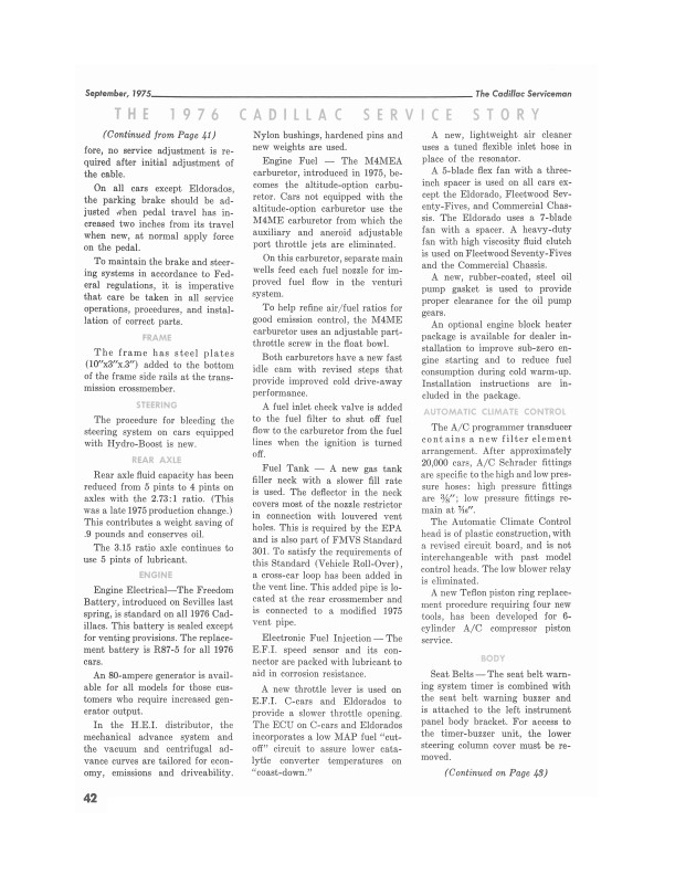 - mid-year parts changes: improved fender rear upper molding attachment, detent solenoids, added cowl sealer, TH-M control valve, Brougham sail panel lights, Eldorado accelerator pedal, Seville center arm rest stops, and late-1976 Seville AC circuitry