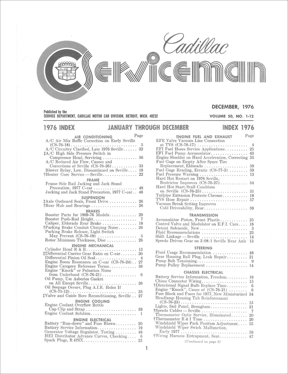 This manual is a licensed reproduction of a set of the Serviceman bulletins printed by Cadillac to help mechanics at the dealer repair cars. If you've got the factory shop manual for your Cadillac, you've only got half the story – this set has repair instructions that mechanics found that they needed after the shop manual was printed, and mid-year changes that aren't accounted for in the shop manual. There is parts and service info for accessories, body, brakes, transmission, engine, cooling system, electrical, lubrication, suspension, steering, tools, and more. Buy now to own this hard-to-find service information.