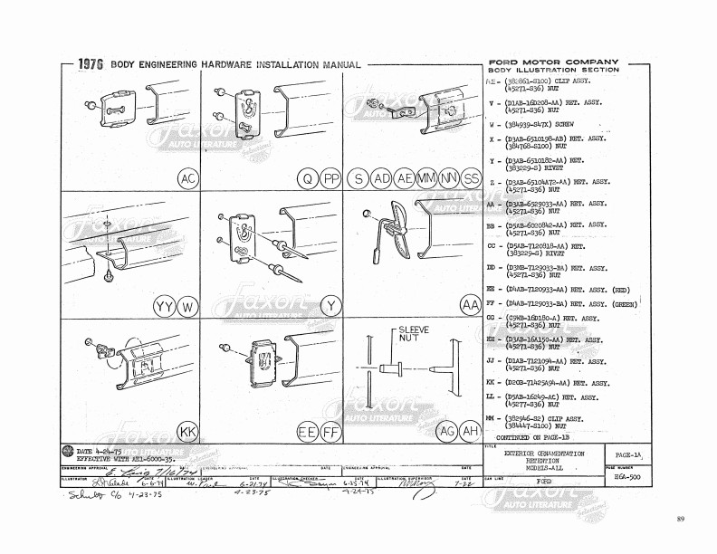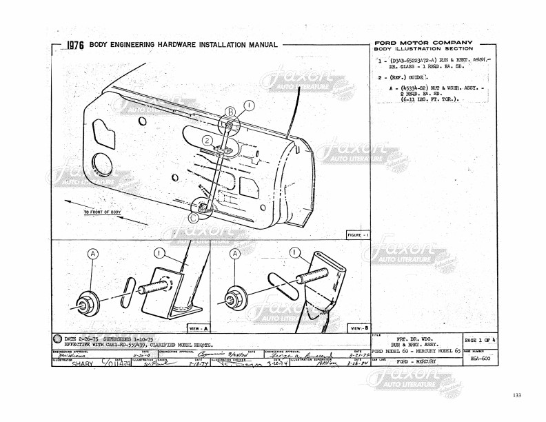 Find out how to make window adjustments. There are exploded views and illustrations on just about every one of the book's pages. Like all assembly manuals, this is reproduced from a book made for use inside the factory, and never intended for the public. Therefore, the print (like the print in original assembly manuals) is occasionally light. Some of the print in this book is small. Each page has a watermark in the background. New condition. Go on and tear that car apart! This book will help you put it back together.