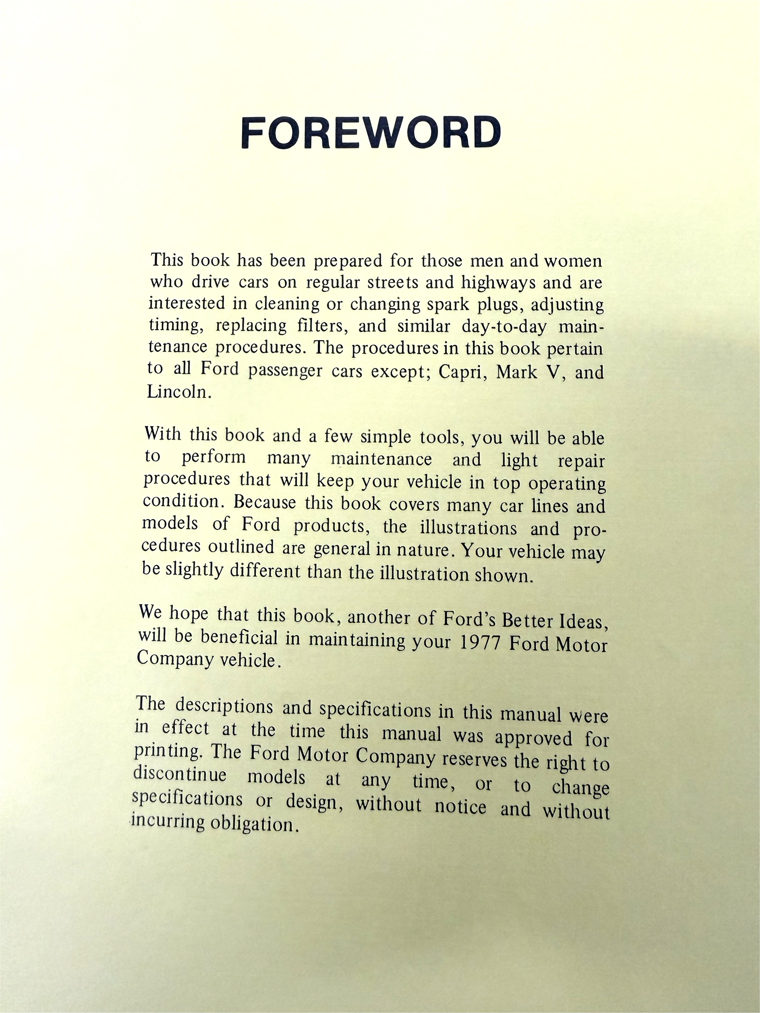 "1977 Owner Maintenance & Light Repair Manual Ford"