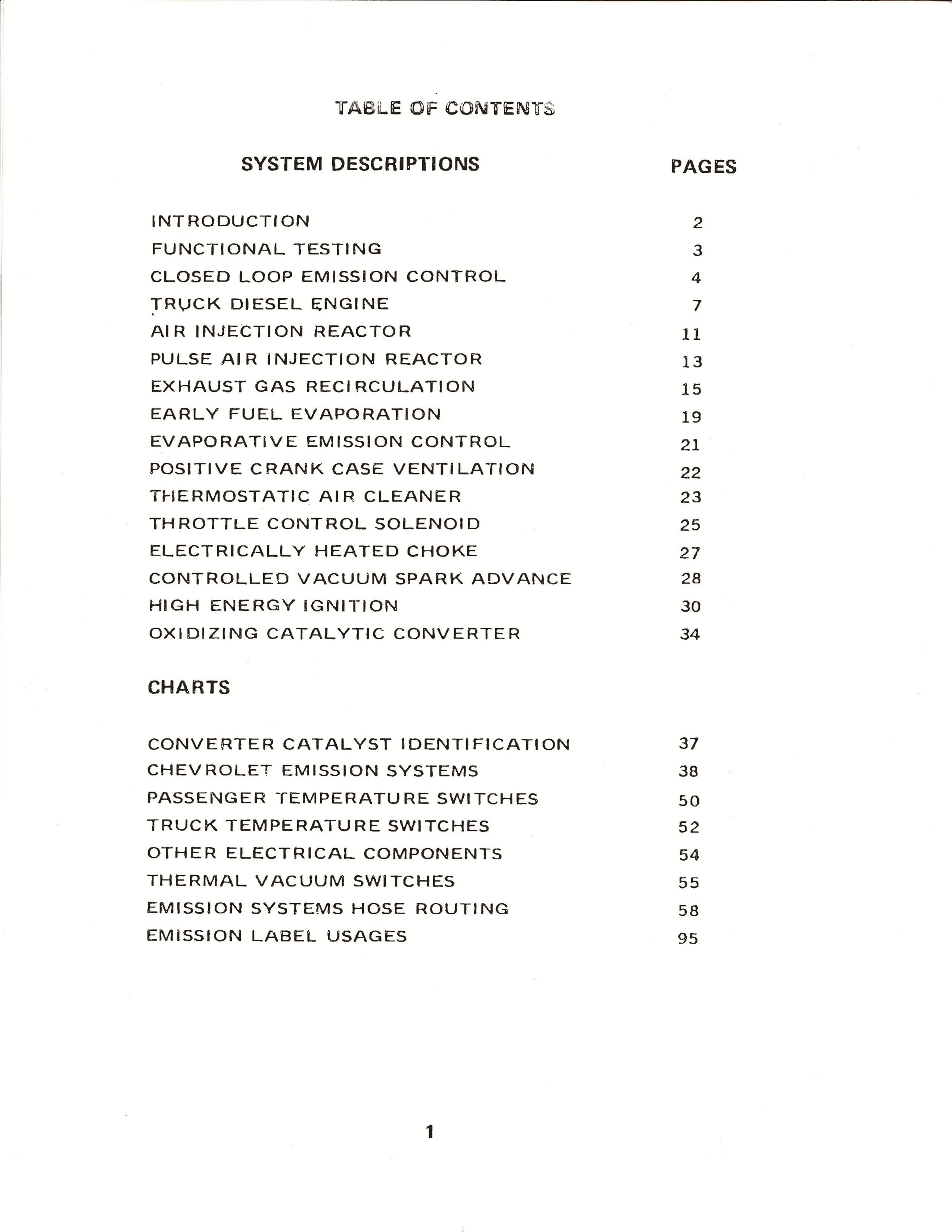 Find out how to diagnose your emissions system with this hard-to-find manual. This is a reprint of the manual that a Chevy dealer mechanic used to work on cars and trucks. You will learn about functional testing, closed loop emission control, truck diesel engine, air injection reactor, exhaust gas recirculation, early fuel evaporation, evaporative emission control, positive crank case ventilation, thermostatic air cleaner, throttle control solenoid, electrically heated choke, controlled vacuum spark advance, high energy ignition, and oxidizing catalytic converter. There are sections on system descriptions, schematics, systems diagnosis, test procedures, vacuum diagrams, and troubleshooting roadmaps to guide you. You'll see charts for converter catalyst identification, car temperature switches, electrical components, thermal vacuum switches, and emission label usages. Pages 58-94 are emissions vacuum hose routing diagrams. New condition. Buy now for this essential shop manual from Chevy.