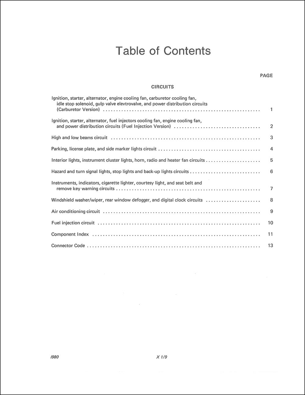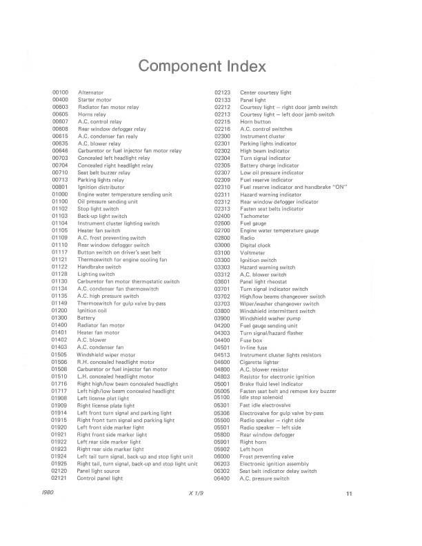 Fiat X 1/9 1979 thru 1981 Wiring Diagrams