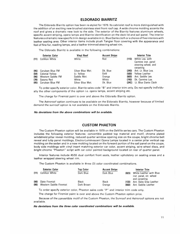 Buy now to get the best information on optional equipment for the 1979 Cadillac.