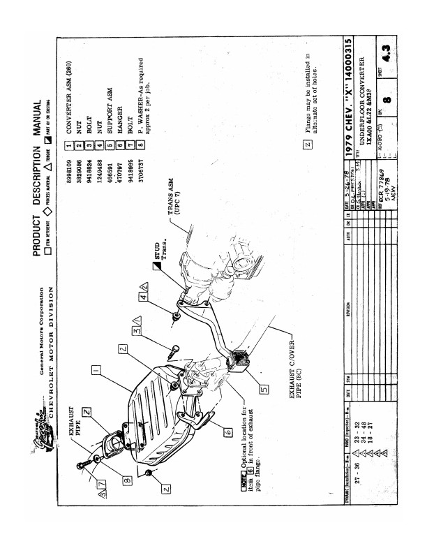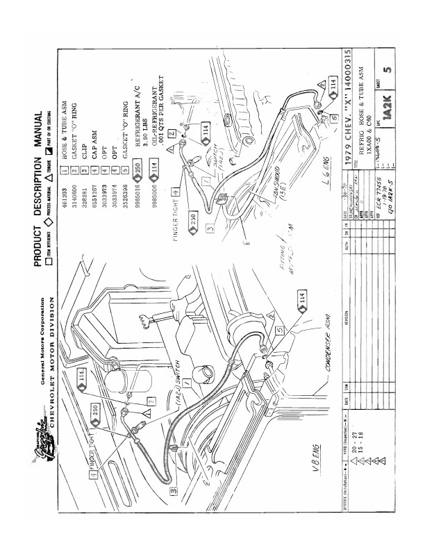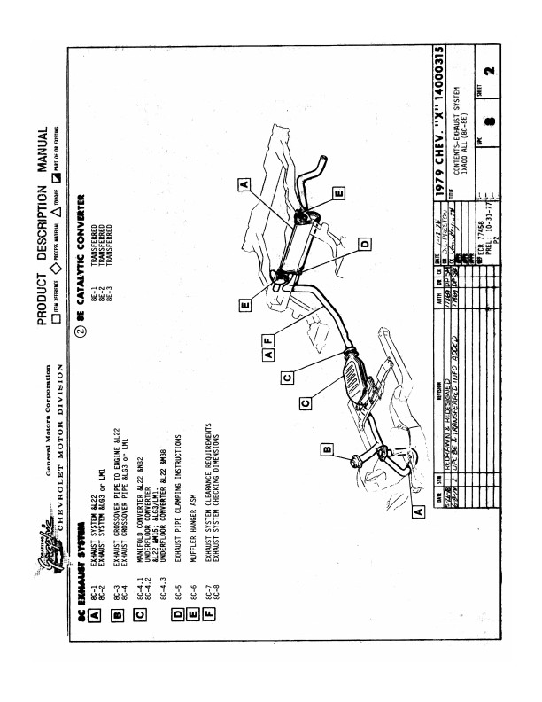 This reprinted manual gives you assembly illustrations down to the last nut, bolt and screw. It shows exploded views of the mechanical parts of the car, and includes part group numbers. Use this manual to help you disassemble or reassemble parts of your car, and or to help identify parts that may be missing or incorrect. The book contains production and regular production option information. That means that you get information on the base model all the way up to "fully loaded." You will find illustrations for body mounting, frame, front & rear suspension, brakes, fuel & exhaust, steering, wheels & tires, electrical (shows dimensional drawings of wire routing, but not flat wiring diagrams), radiator & grille, bumpers, and much more. The book shows how the engine and transmission are mounted in the car, but does not show the inside of the engine or transmission. You will also find accessories and options such as the radio & speakers, heater, and much more. There are exploded views and illustrations on just about every page, with wiring diagrams, torque specifications, and handwritten revision records.