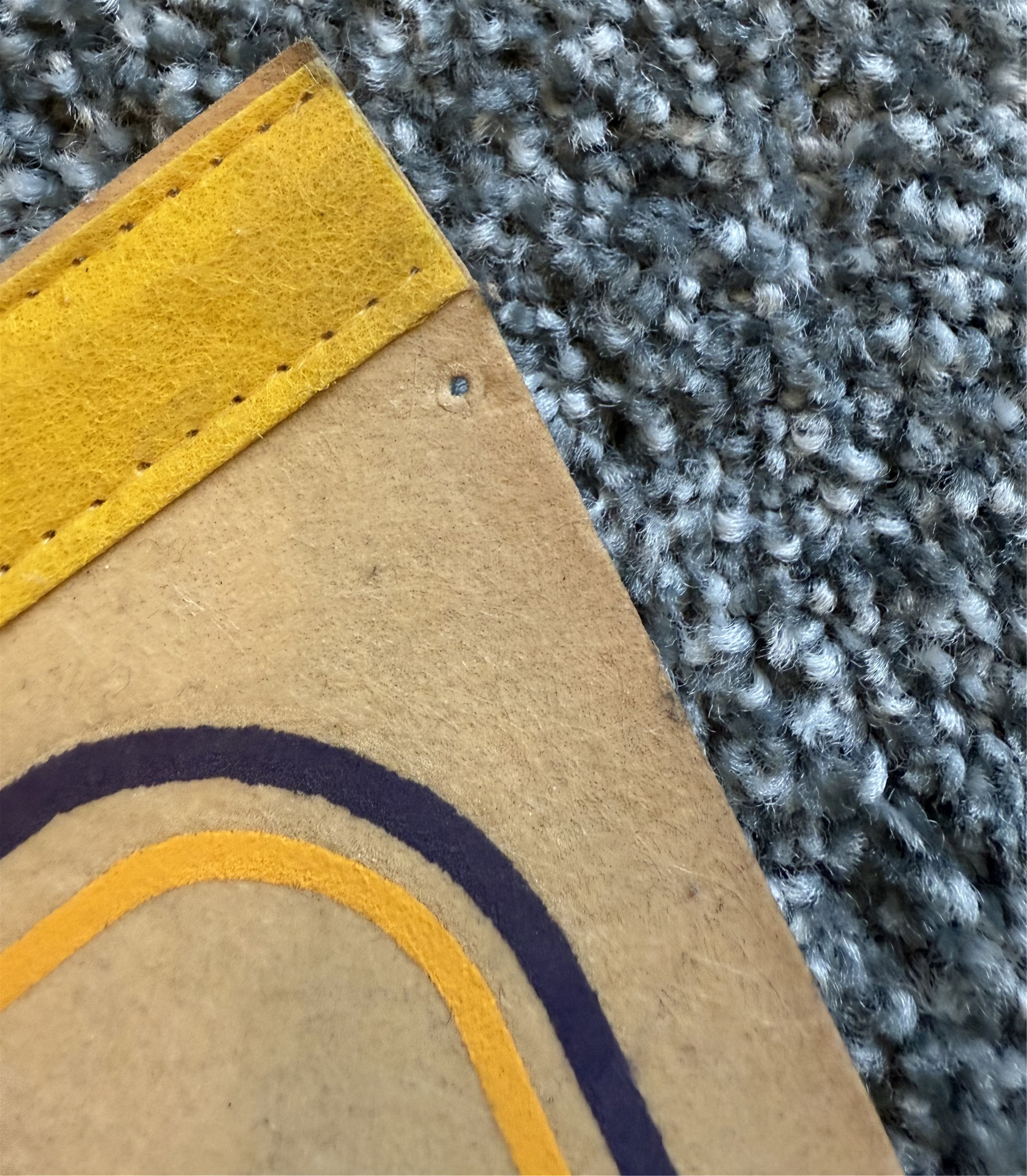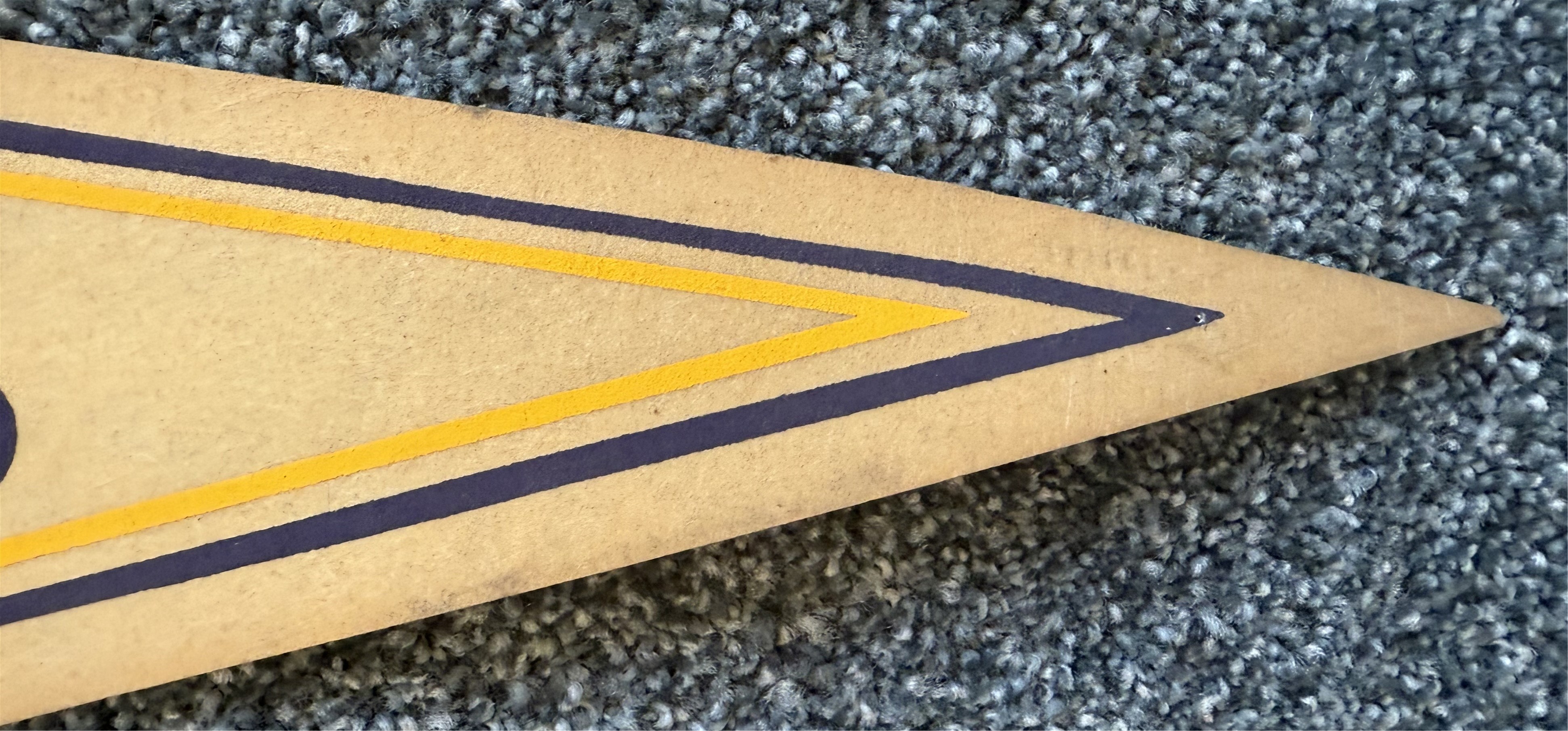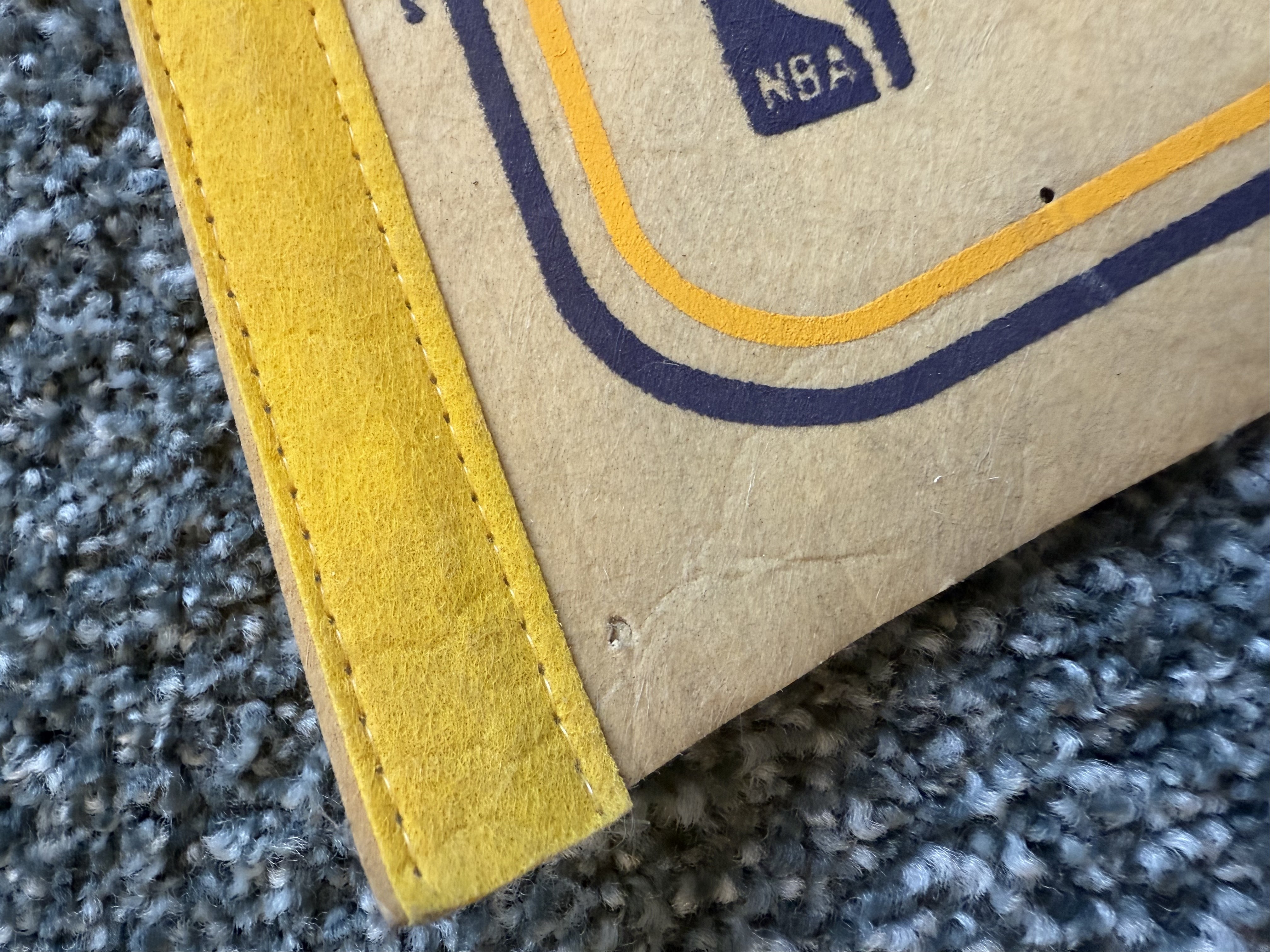 Condition: Yellowed from age. There are a few small pinholes where it was once tacked to the wall (see closeup photos). No rips, tears, or chips at edge. It is made of felt and has the NBA logo on it.