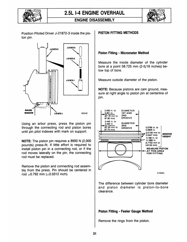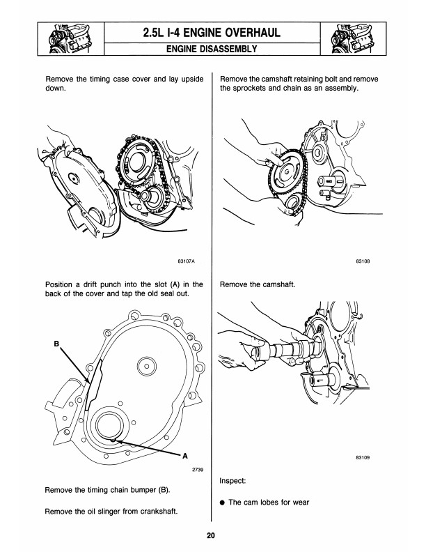 Written for Jeep dealership mechanics, this reprint of the factory manual shows you how to work on your vehicle's engine. This overhaul manual contains instructions on how to completely disassemble, refurbish, and reassemble the 4 cylinder gas engine after it is removed from the vehicle. This is sometimes referred to as 'benchwork'. With step-by-step instructions, clear pictures, exploded view illustrations, schematics, and specifications, you will have the information you need to get your project on the road and keep it there. This manual covers 1984-1988 AMC & Jeep 4 cylinder gas engines (called 2.46L or 2.5L), which were used in Eagle, CJ-7, Scrambler, Cherokee, Wagoneer, Comanche, and Wrangler vehicles. This book measures 8.5" x 11". has 55 pages and is in new condition. Buy now to own the best manual for your engine.