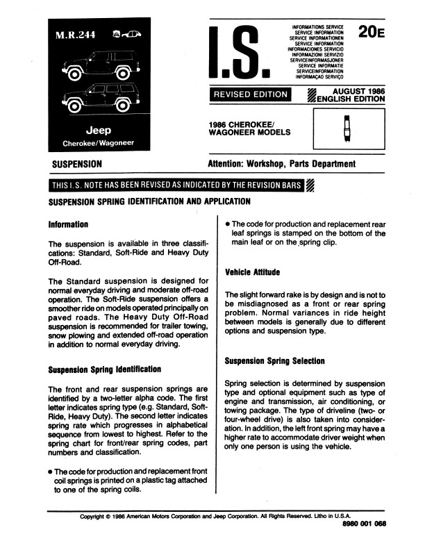 "M.R.244 Jeep Cherokee/ Wagoneer"