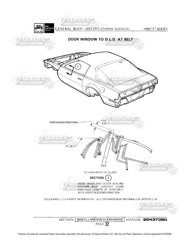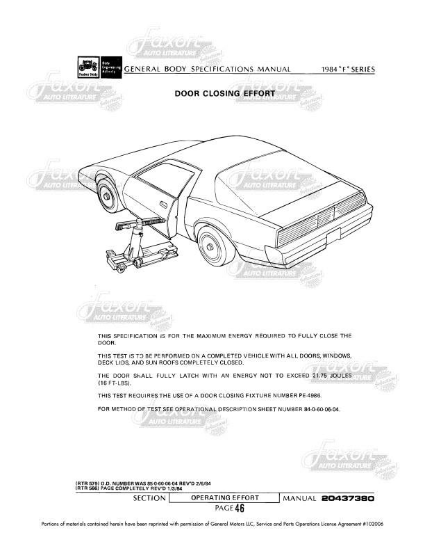 "General Body Specifications Manual 1984 Camaro Firebird"