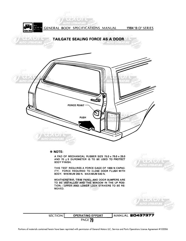 "General Body Specifications Manual 1984"