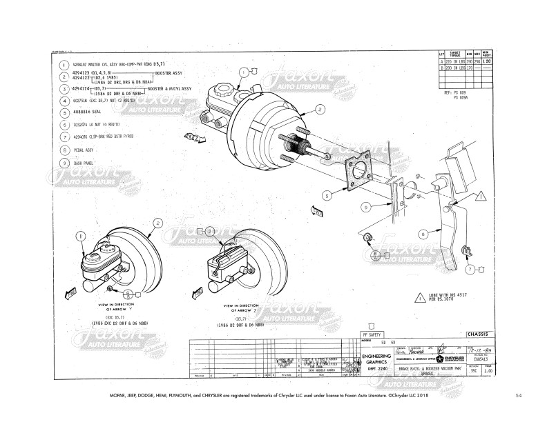 "1985-1986 Assembly Manual Chassis & Powertrain D&W 100-350 Ramcharger"