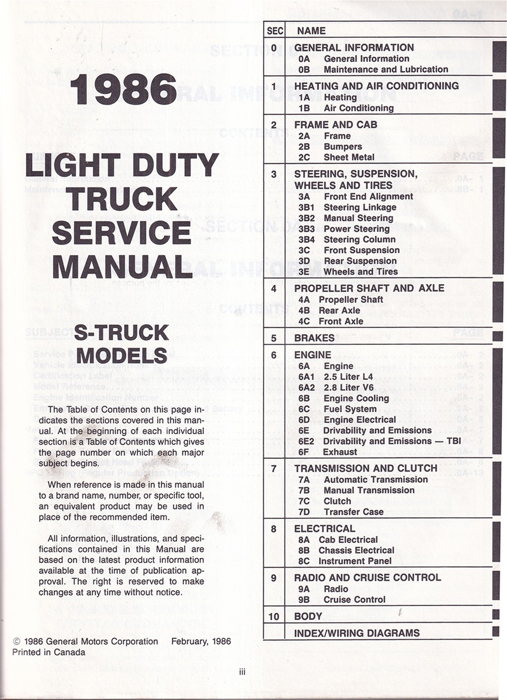 "Chevrolet 1986 S-10 Light Duty Truck Shop Manual"