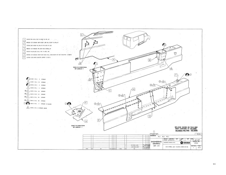 Body Installation Instructions: Find out how to install glass, hood, and mirrors; assemble doors, locks, handles, weatherstripping, and hinges; stow the jack, and put in the spare tire carrier. Interior assembly includes the headliner, seats, seat belts, arm rests, console, carpet, insulation, interior trim, glove box, dash, steering column, and visors. You'll see specifications for applying side moulding, chrome trim, chrome lettering, stripes, and weatherstripping. Includes installation of radiator, grille, bumpers, and antenna. You'll see gap tolerances for doors and windshield.